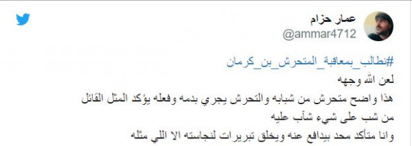 وفي موقع التواصل الاجتماعي "تويتر" واسع الاستخدام في السعودية، ينضم مزيد من المغردين السعوديين إلى الوسم "#نطالب_بمعاقبه_المتحرش_بن_كرمان" بالتزامن مع تدخل الشؤون الصحية في محافظة القنفذة بالحادثة وفتح تحقيق فيها.