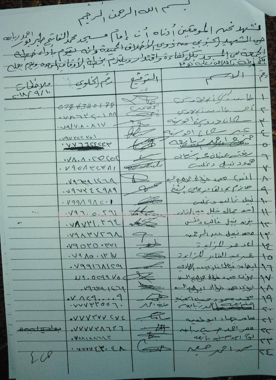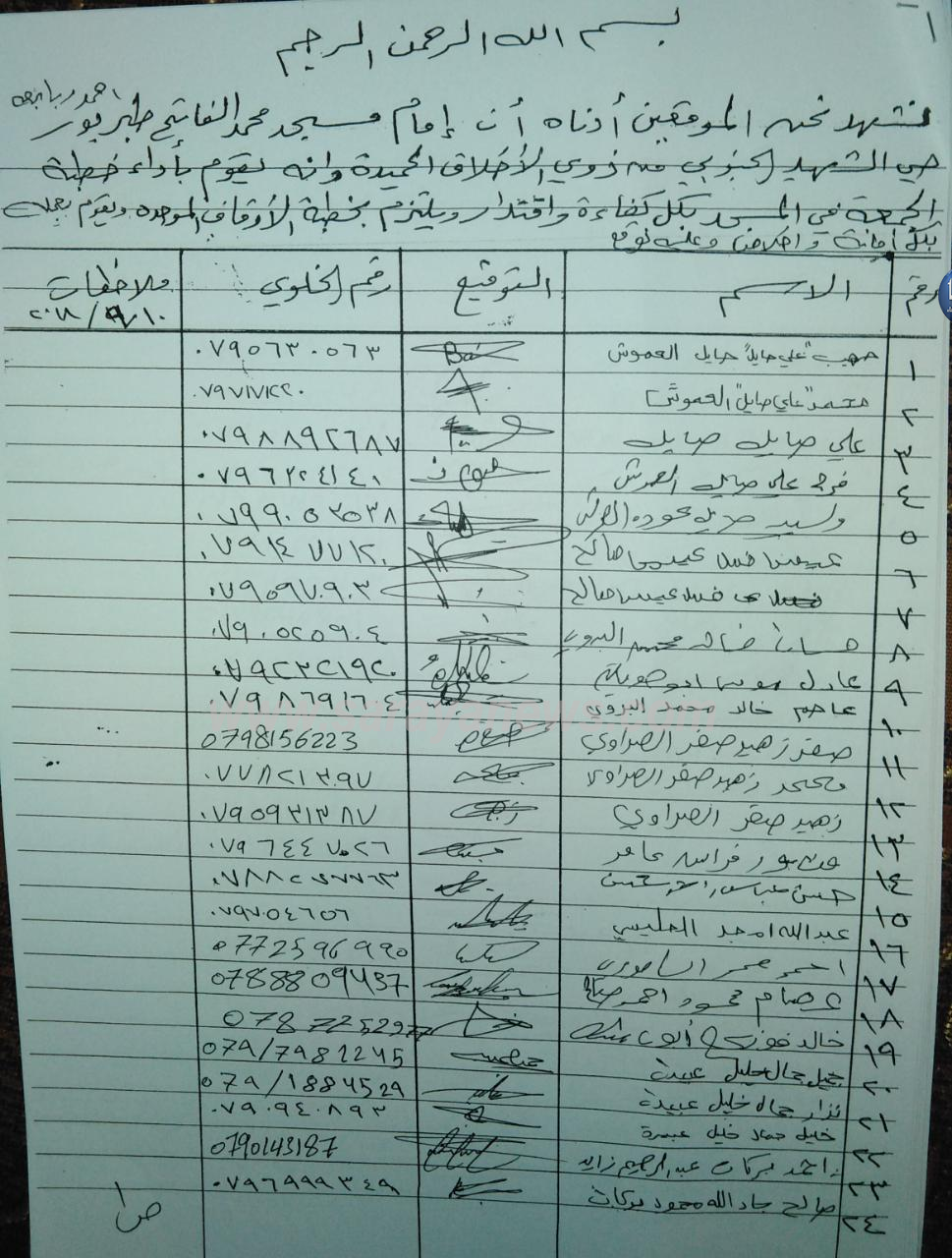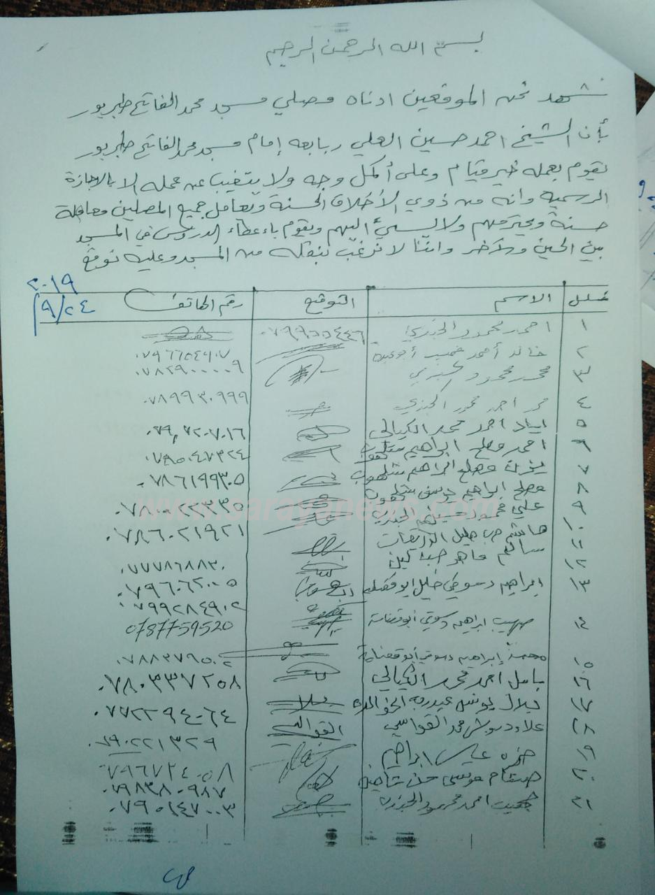 وتالياً عريضة أهالي المنطقة التي توضح اداء عمل امام مسجد محمد الفاتح :