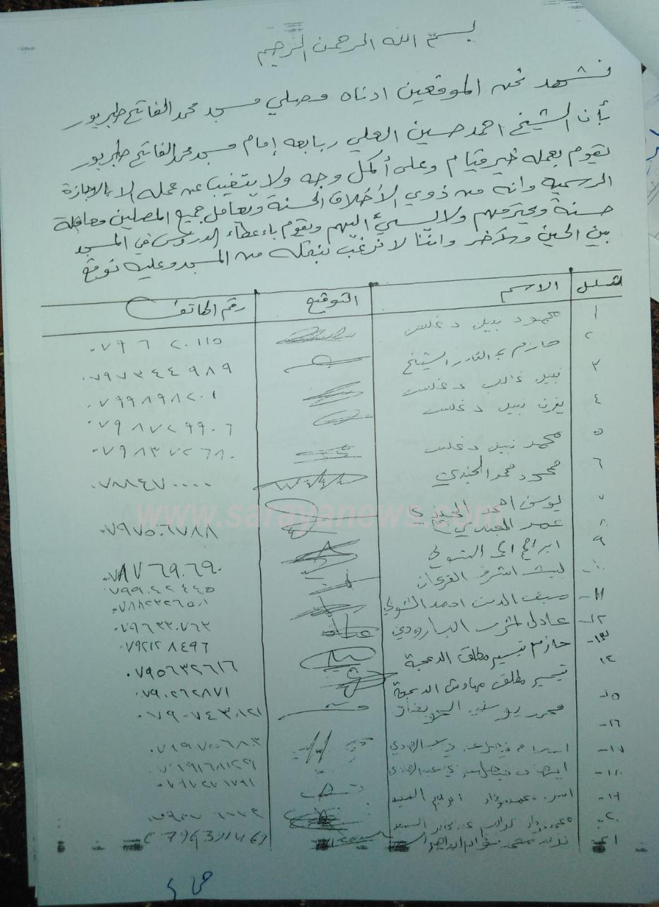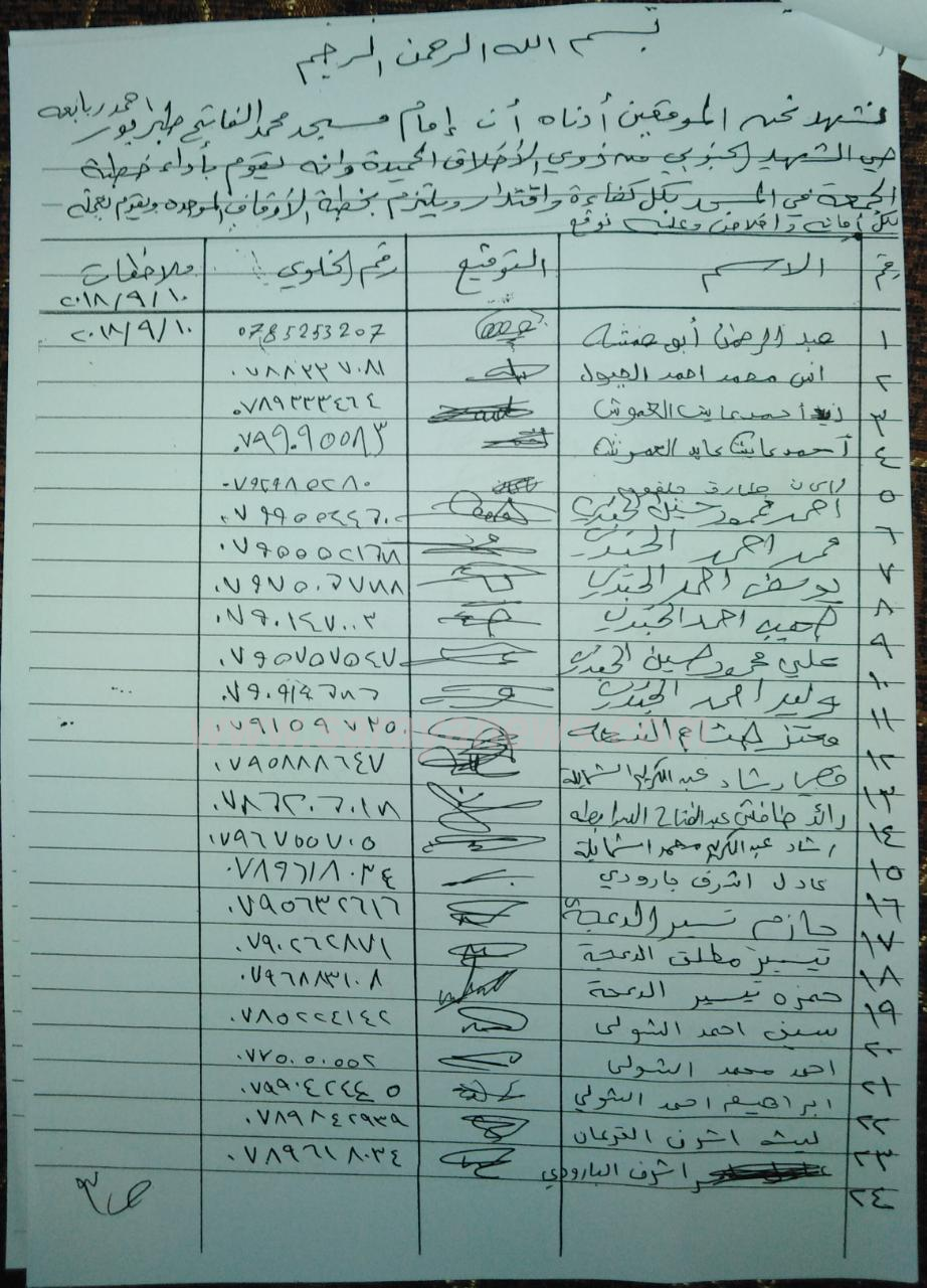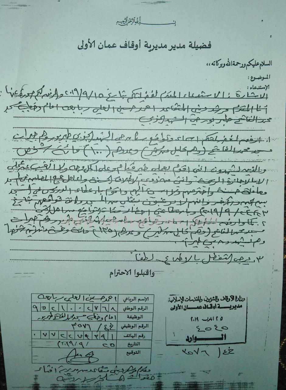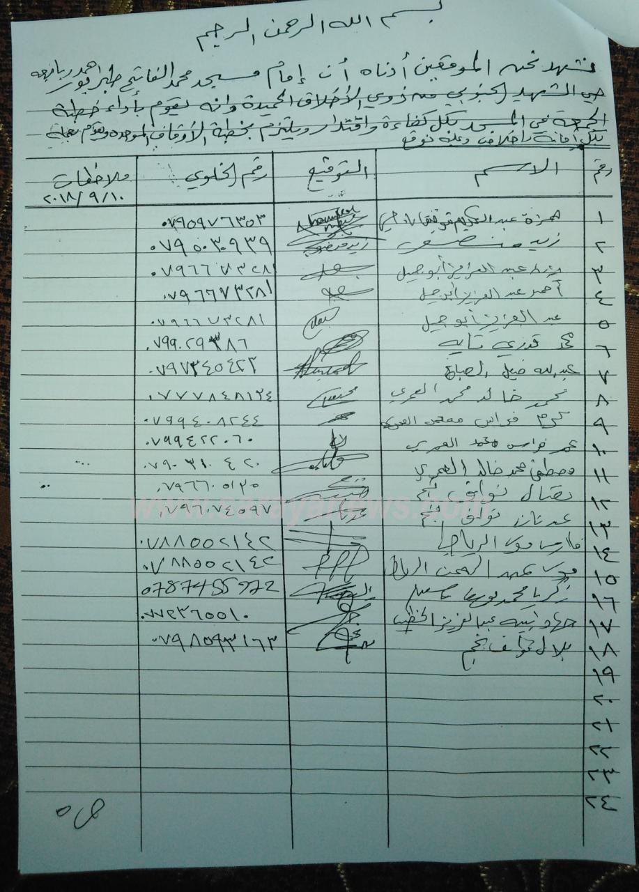 وتالياً عريضة أهالي المنطقة التي توضح اداء عمل امام مسجد محمد الفاتح :