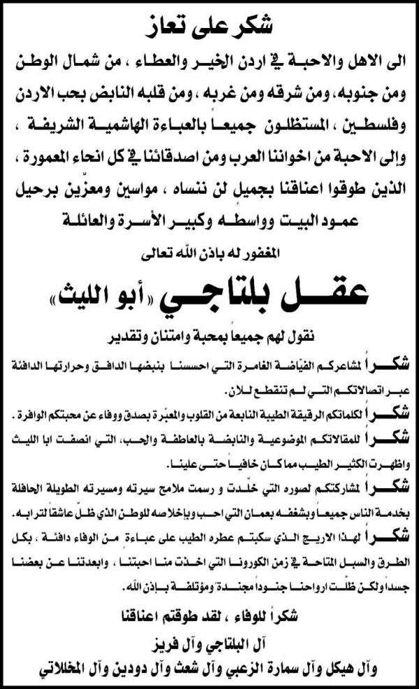 البلاونة ينعى المقدم المتقاعد فايز عبد العزيز العفيشات