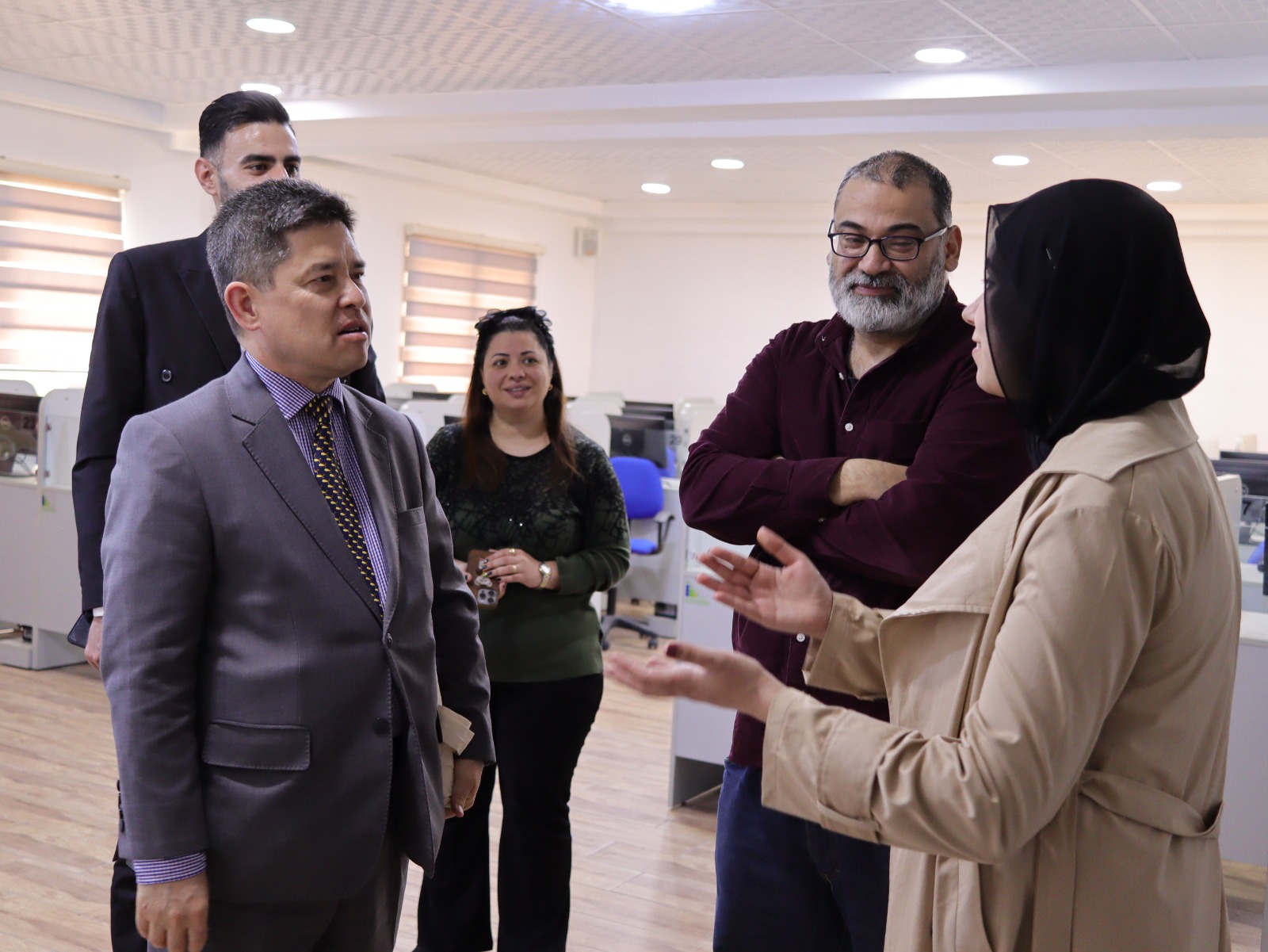 وقدم الوفد محاضرة تعريفية لطلبة الجامعة حول برامج التبادل الثقافي وفرص الدراسة في الولايات المتحدة، مع تسليط الضوء على الفوائد الأكاديمية والثقافية التي تقدمها هذه البرامج. كما تم استعراض الإجراءات والمتطلبات اللازمة للتقديم، بالإضافة إلى فرص المنح الدراسية والتخصصات المتاحة في مختلف الجامعات الأمريكية، كما وتخللت الزيارة جولة تعريفية للجامعة، حيث اطلع الوفد على مرافق الجامعة ومختبراتها.