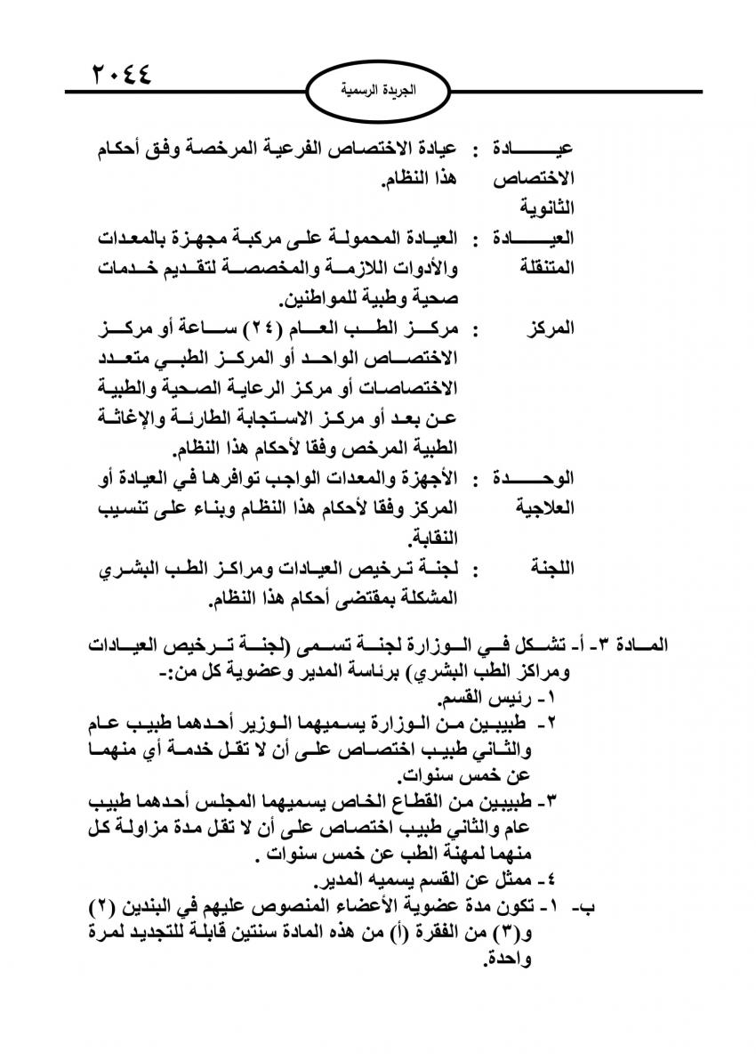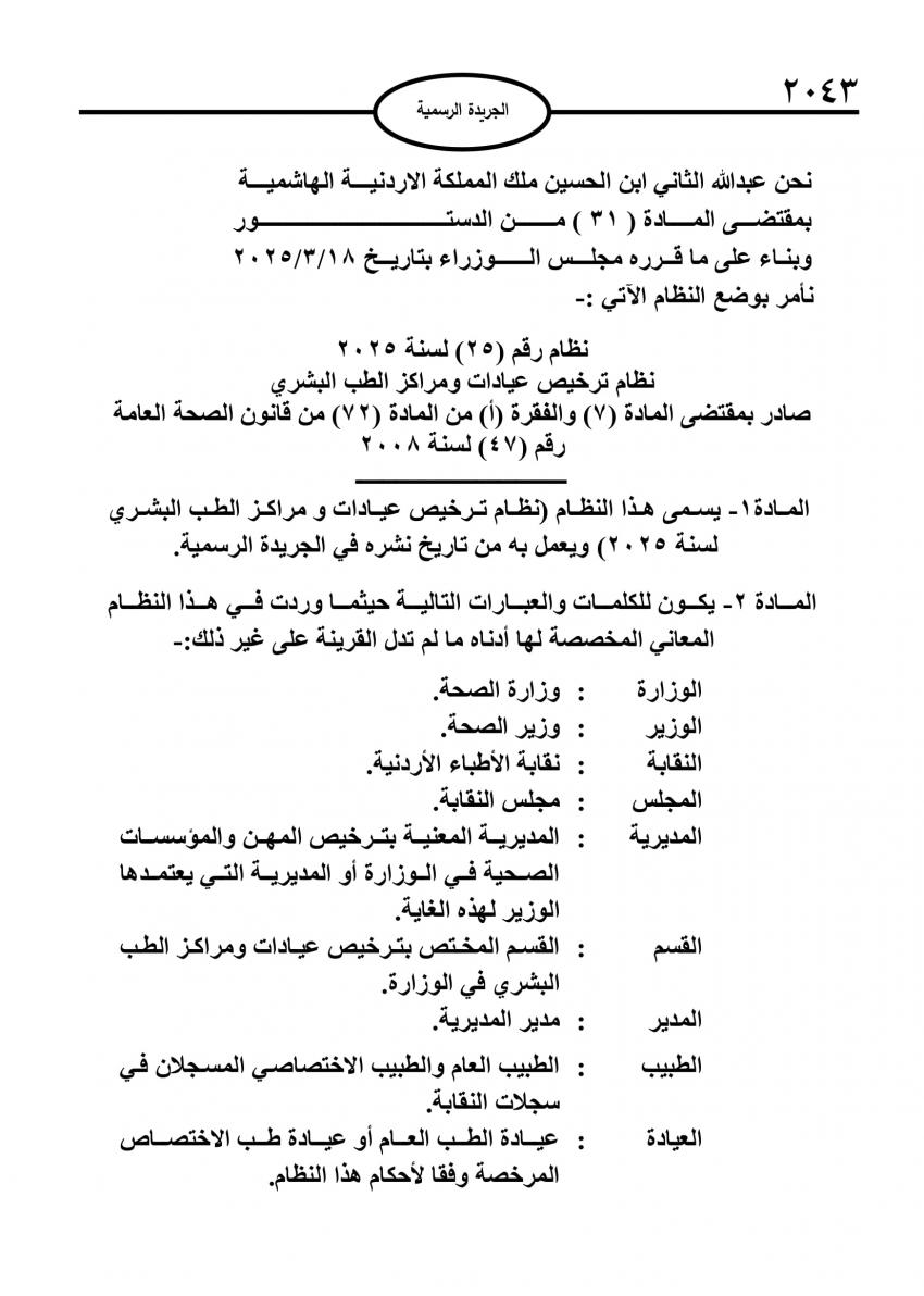 سرايا - صدر في عدد الجريدة الرسمية اليوم الاربعاء، النظام الجديد لترخيص عيادات ومراكز الطب البشري.