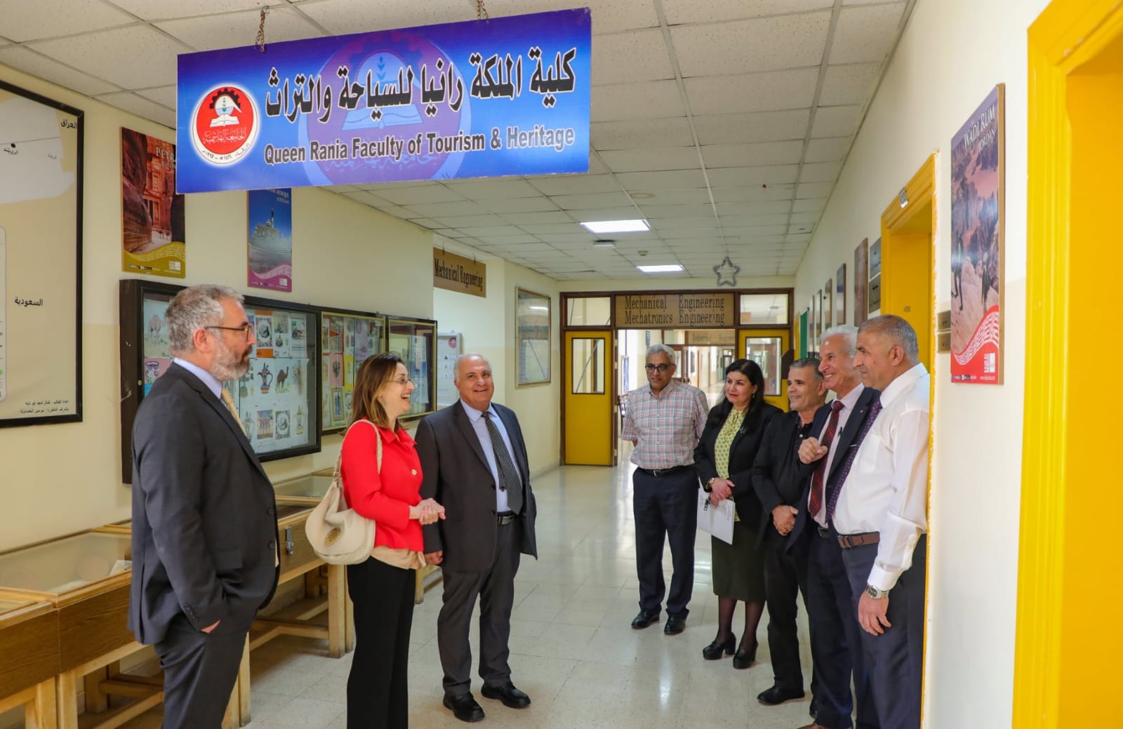 وجرى خلال اللقاء، الذي حضره نائبا رئيس الجامعة الأستاذ الدكتور محمد المشاعلة، والأستاذ الدكتور وصفي الروابدة، وعميد كلية الملكة رانيا للسياحة والتراث الأستاذ الدكتور نايف حداد، استعراض البرامج الأكاديمية المتقدمة التي تقدمها الجامعة الهاشمية خاصة في مجال التعليم التطبيقي والبحث العلمي المتعلق بالسياحة والآثار والتراث الثقافي والتنقيبات الأثرية والسياحة المستدامة.