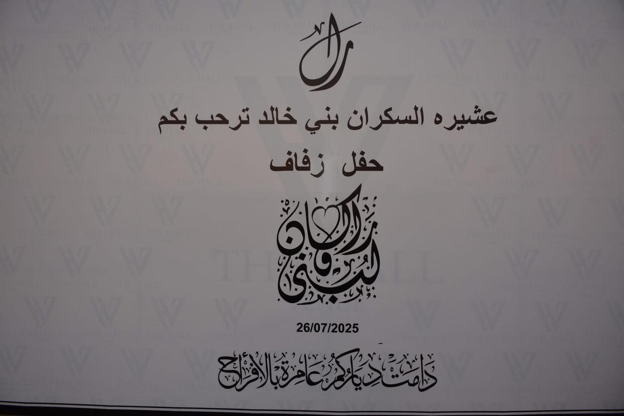وأعرب بني خالد عن شكره وتقديره لأصحاب المعالي والسعادة والعطوفة، ولكل الضيوف الكرام، وخاصة أبناء قبيلته بني خالد، الذين يفخر بانتمائه إليهم، وكانوا سندًا وداعمًا له في هذه المناسبة السعيدة. كما شكر الحضور الكريم من دولة الإمارات العربية المتحدة، سواء من حضر شخصيًا، أو شارك عبر الاتصال والتواصل، أو حتى بالدعاء والمحبة الصادقة.