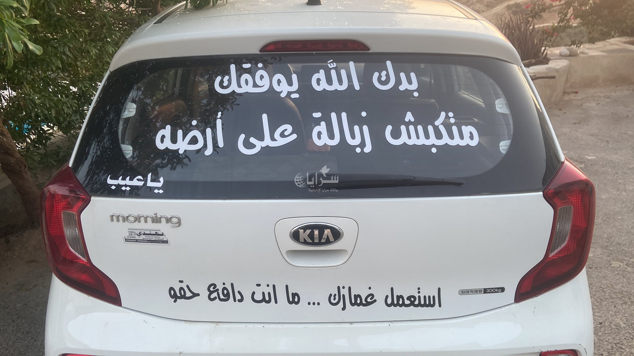 ولم يكتفِ بذلك، بل جعل من مركبته الخاصة وسيلة لتمرير رسائل التوعية، حيث خط عليها عبارات مؤثرة تحث المواطنين على التحلي بالمسؤولية، والاهتمام بالمصلحة العامة، وتعزيز الانتماء الوطني.