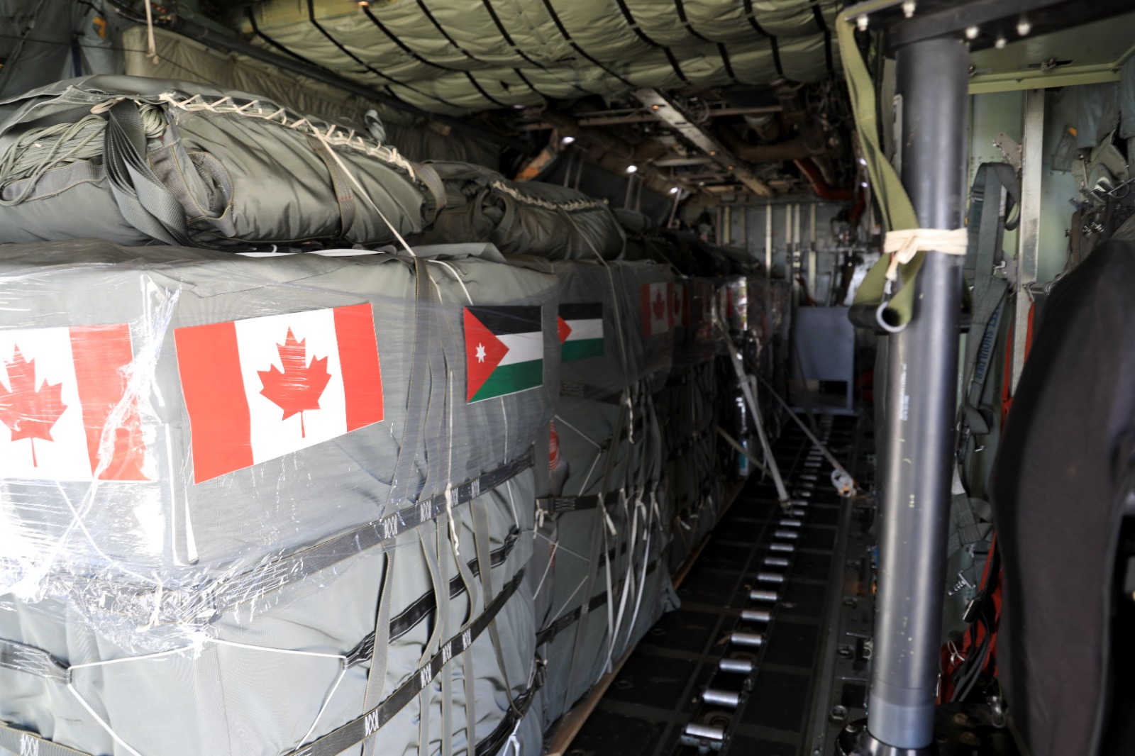 وجرت عمليات الإنزال التي ساهمت الحكومة الكندية بإرسال عدد من المواد من قبلها بواسطة طائرتين من نوع (C-130) تابعتين لسلاح الجو في البلدين الشقيقين، بالتنسيق مع الهيئة الخيرية الأردنية الهاشمية، حيث تم إنزال (18) طناً من المواد الغذائية والإغاثية في مختلف المناطق داخل القطاع ليصل إجمالي الحمولة التي تم إنزالها خلال الأيام الماضية نحو (91) طناً من المواد الأساسية، وفق آلية تضمن إيصال المساعدات بكفاءة وضمن معايير العمليات الجوية الدقيقة.