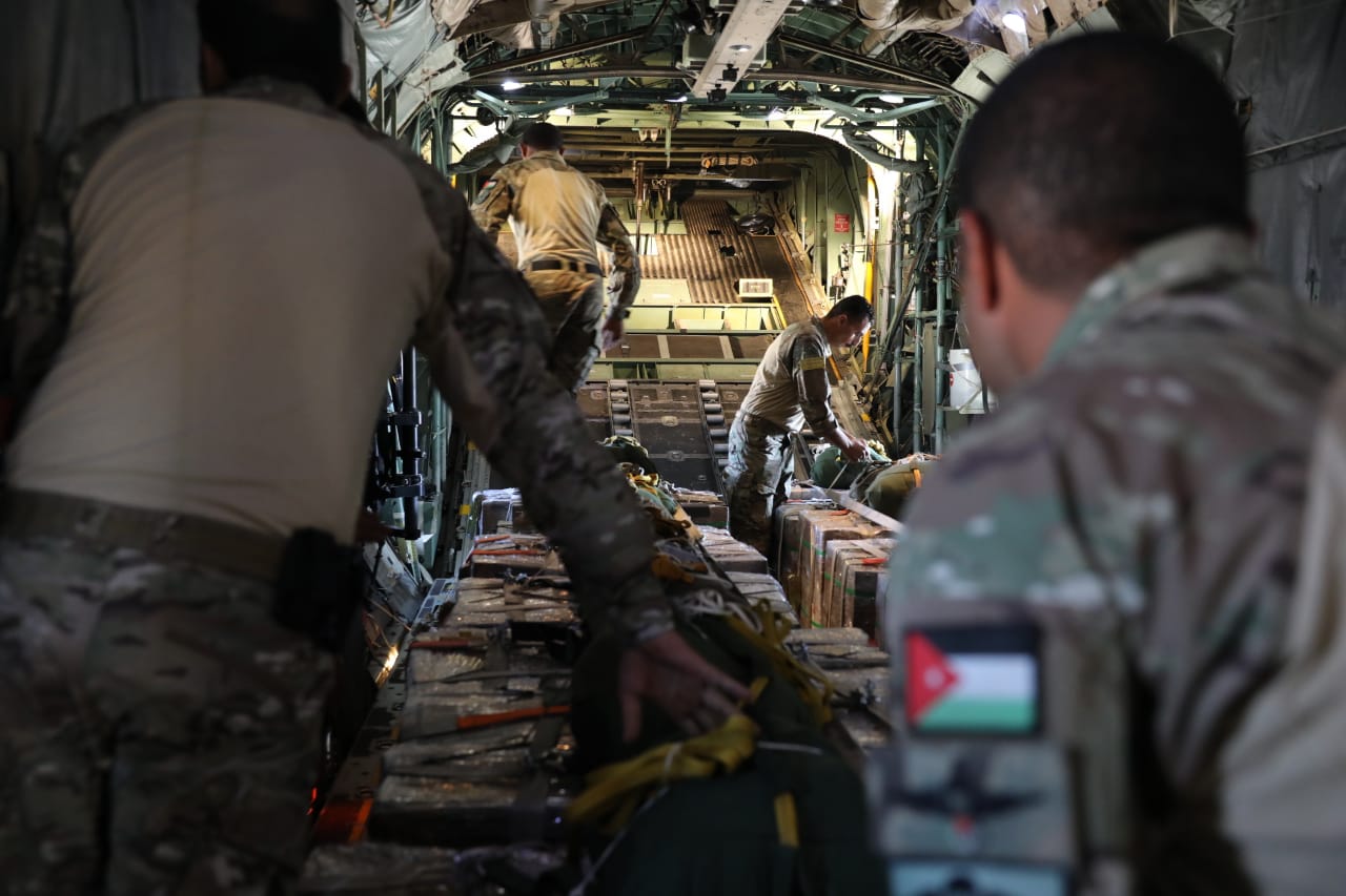 سرايا - نفذت القوات المسلحة الأردنية، اليوم الثلاثاء، عملية إنزال جوي إلى قطاع غزة، شاركت في العملية طائرات سلاح الجو الملكي الأردني، وطائرات من كل من دولة الإمارات العربية المتحدة وألمانيا، فرنسا، إيطاليا، هولندا، سنغافورا بالإضافة إلى اندونسيا، حيث تم إسقاط نحو (85) طناً من المواد الغذائية والإغاثية داخل القطاع.