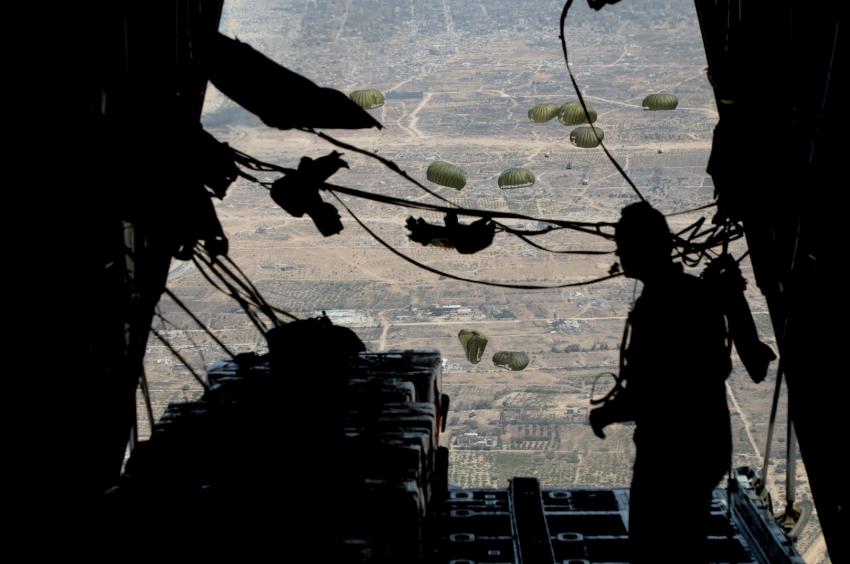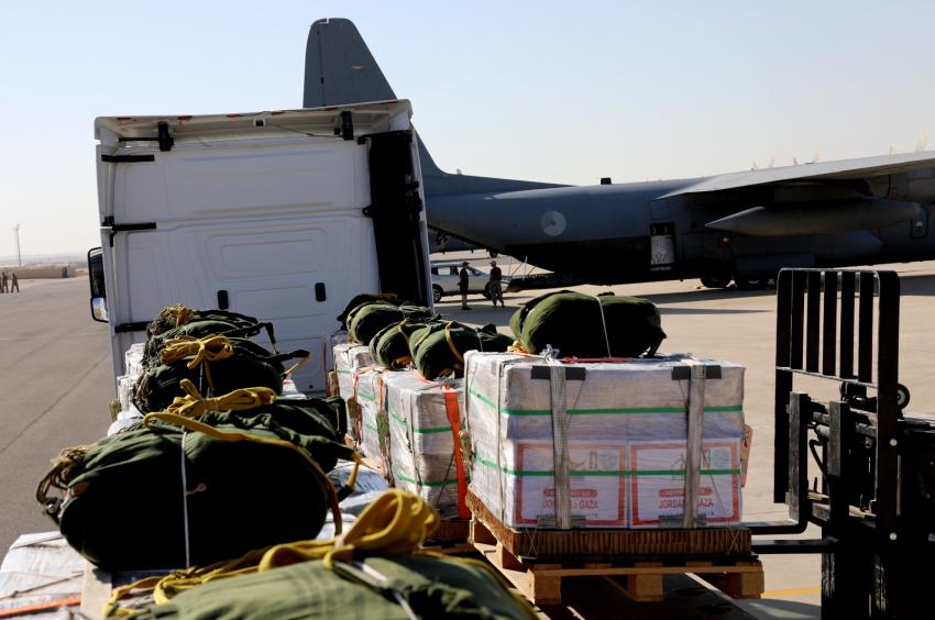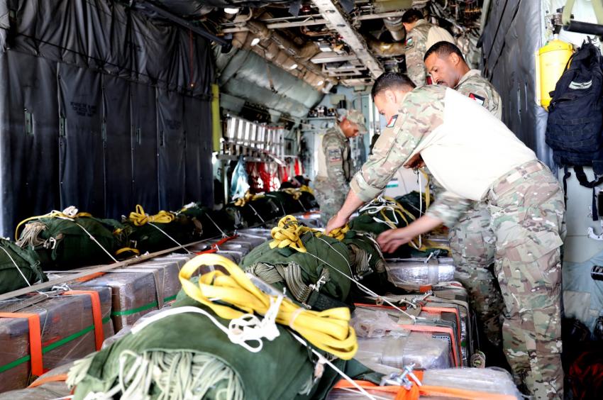 سرايا - نفذت القوات المسلحة الأردنية، اليوم الاربعاء، عملية إنزال جوي إلى قطاع غزة، شاركت في العملية بالإضافة إلى طائرات سلاح الجو الملكي الأردني، طائرات من كل من جمهورية ألمانيا الاتحادية ودولة الإمارات العربية المتحدة وجمهورية فرنسا ومملكة هولندا وجمهورية سنغافورا وجمهورية اندونسيا، حيث تم إسقاط نحو (62) طناً من المواد الغذائية والإغاثية داخل القطاع.
