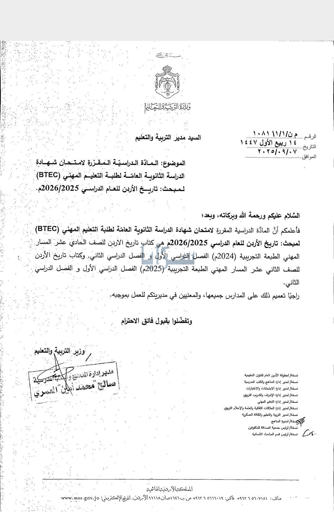 وأكد وزير التربية والتعليم على أهمية الالتزام بالمادة المقررة لضمان توحيد مخرجات العملية التعليمية للطلبة المتقدمين لشهادة BTEC المهنية.