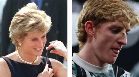 وفي عام 1993، تم تصوير الأميرة الراحلة في ثورب بارك وهي ترتدي سترة جلدية سوداء عصرية مع قصة شعرها الشهيرة ذات التجعيدات الفضفاضة، وفي يناير الماضي ظهر اللاعب البالغ من العمر 24 عاما بمظهر مشابه للغاية مع ابتسامة مشابهة.