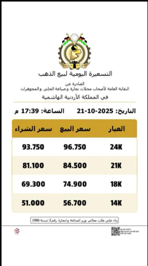 وبحسب التسعيرة، تراجع سعر بيع غرام الذهب عيار 21 ، وهو الأكثر رغبة لدى المواطنين في السوق المحلية، إلى 84.5 دينارا لغايات البيع من محالّ الصاغة، مقابل 81.1 دينارا لجهة الشراء.