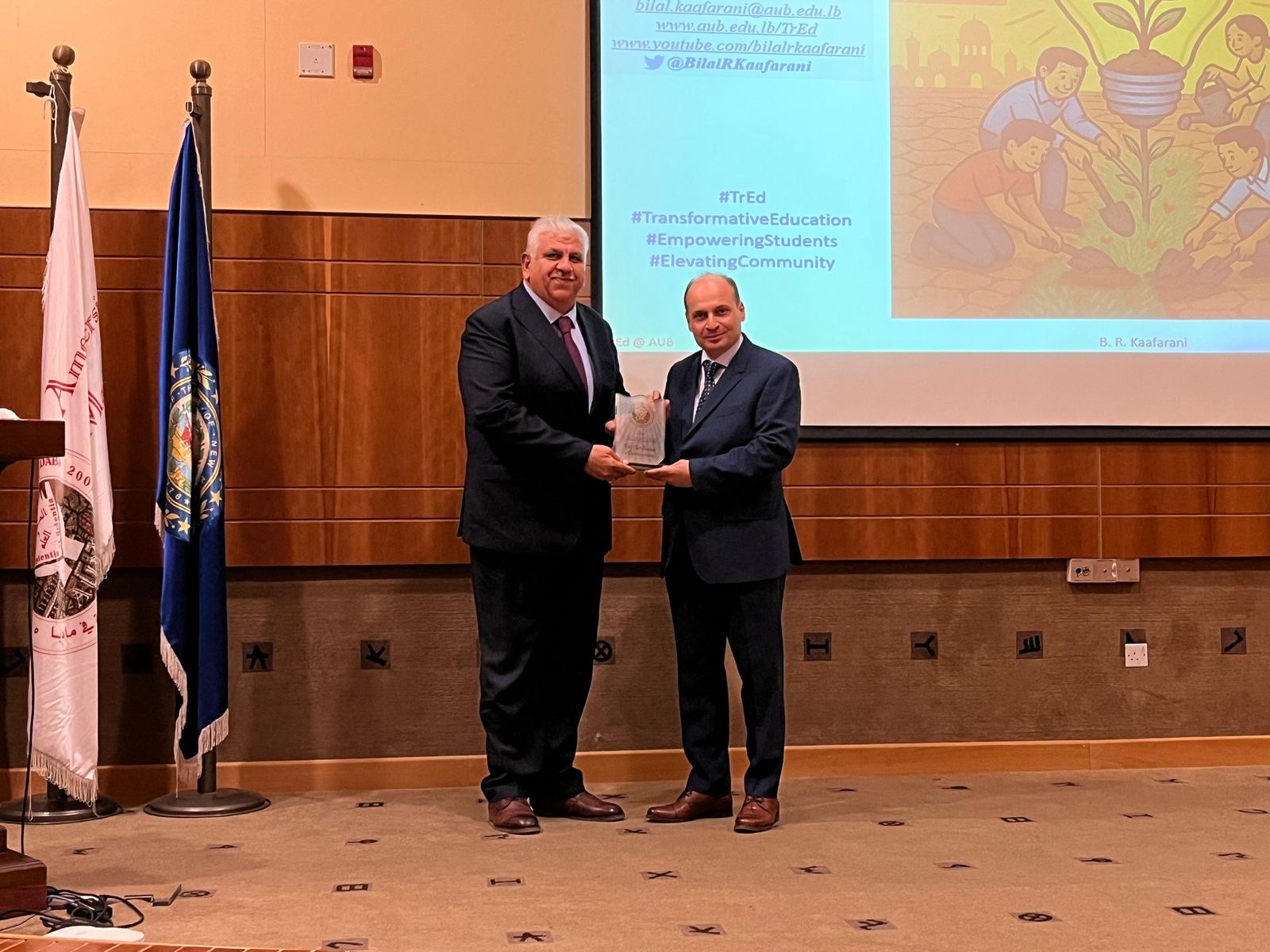 وفي ختام اللقاء، قدّم رئيس الجامعة الأستاذ الدكتور مأمون عكروش درعًا تكريميًا للدكتور بلال قعفراني تقديرًا لمشاركته القيمة وجهوده في دعم مسيرة التعليم والبحث العلمي، مؤكدًا حرص الجامعة الأميركية في مادبا على استضافة مثل هذه اللقاءات التي تُثري الفكر الأكاديمي وتفتح آفاقًا جديدة أمام الطلبة.