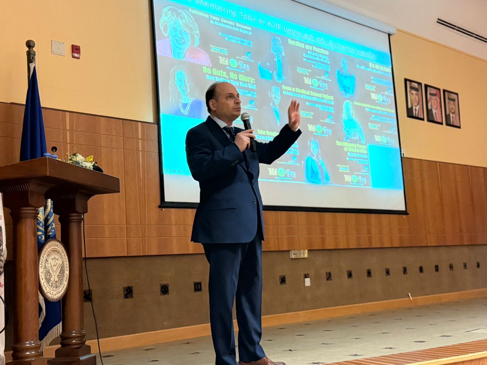 استضافت الجامعة الأميركية في مادبا اليوم الأثنين 27 تشرين الأول 2025، محاضرة عامة بعنوان "التعليم التحويلي (Transformative Education): صناعة فرص فريدة تغيّر الحياة وتمكن قادة الغد" قدّمها الدكتور بلال قعفراني من قسم الكيمياء في الجامعة الأميركية في بيروت، وذلك بحضور رئيس الجامعة الأستاذ الدكتور مأمون عكروش وعدد من أعضاء الهيئتين الأكاديمية والإدارية وجمع من الطلبة.