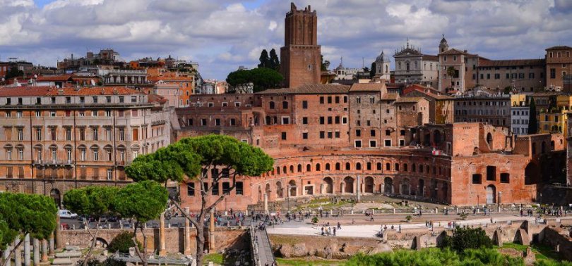 يقال أن سوق تراجان، الذي تم بناؤه حوالي عام 100 بعد الميلاد، هو أول مركز تسوق مغطى في العالم، ويعد عمود تراجان في روما معلمًا بارزًا ورمزًا للقوة الإمبراطورية منذ عام 113 بعد الميلاد، وكان نقطة محورية في مجمع السوق الذي بناه الإمبراطور تراجان على الجانب الشمالي من المنتدى الروماني.