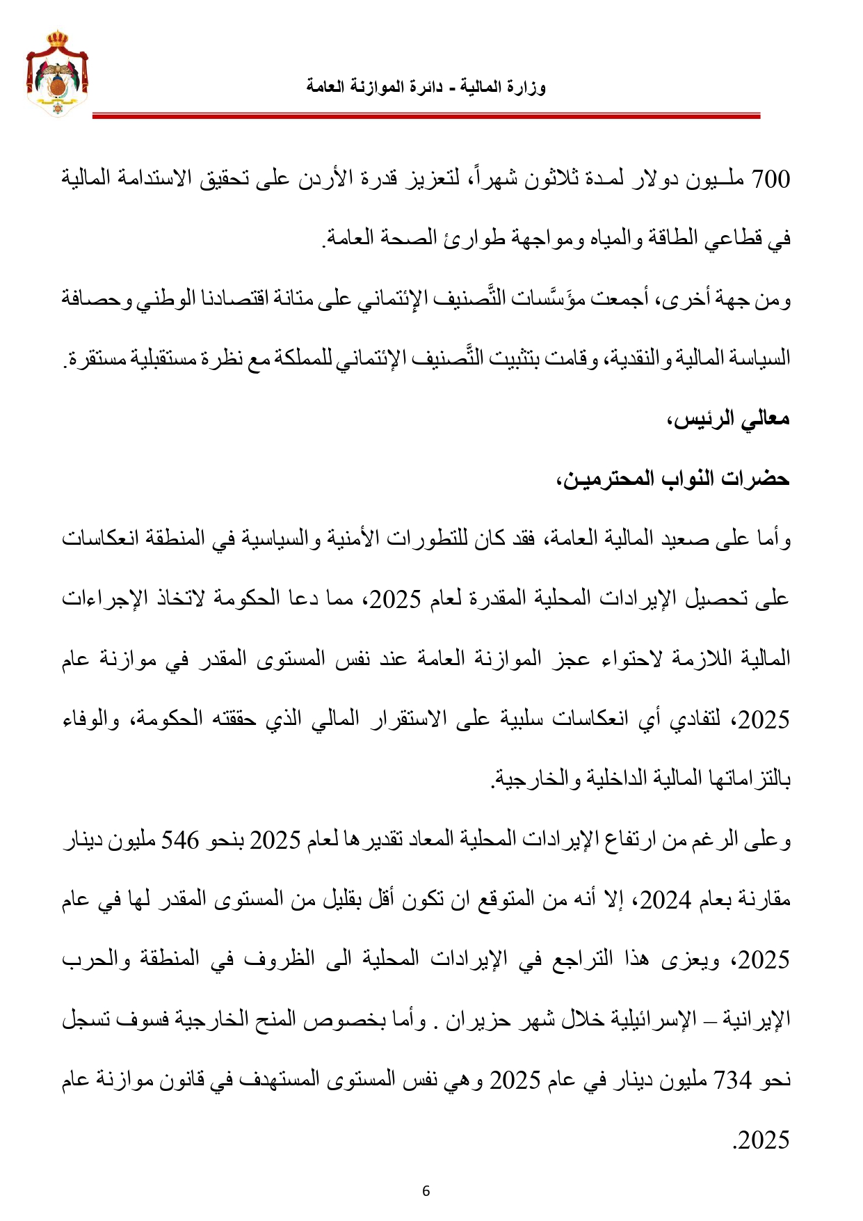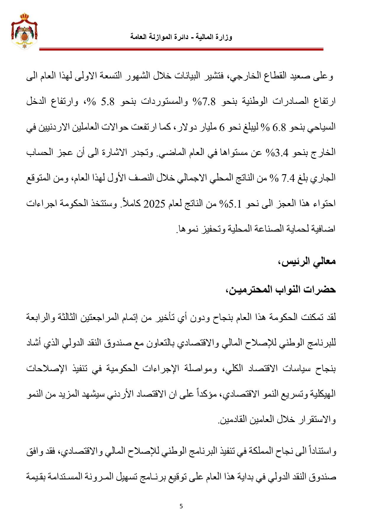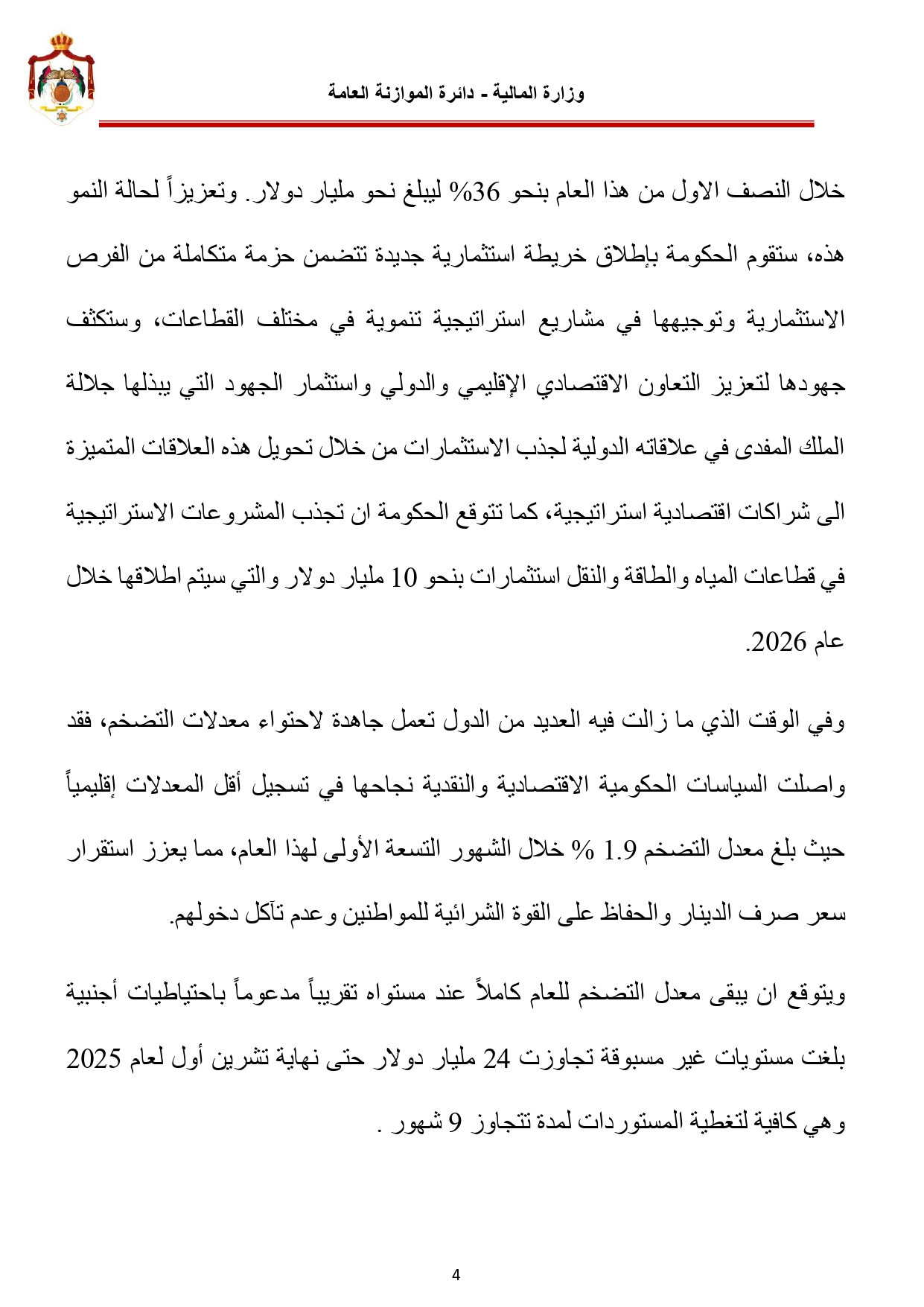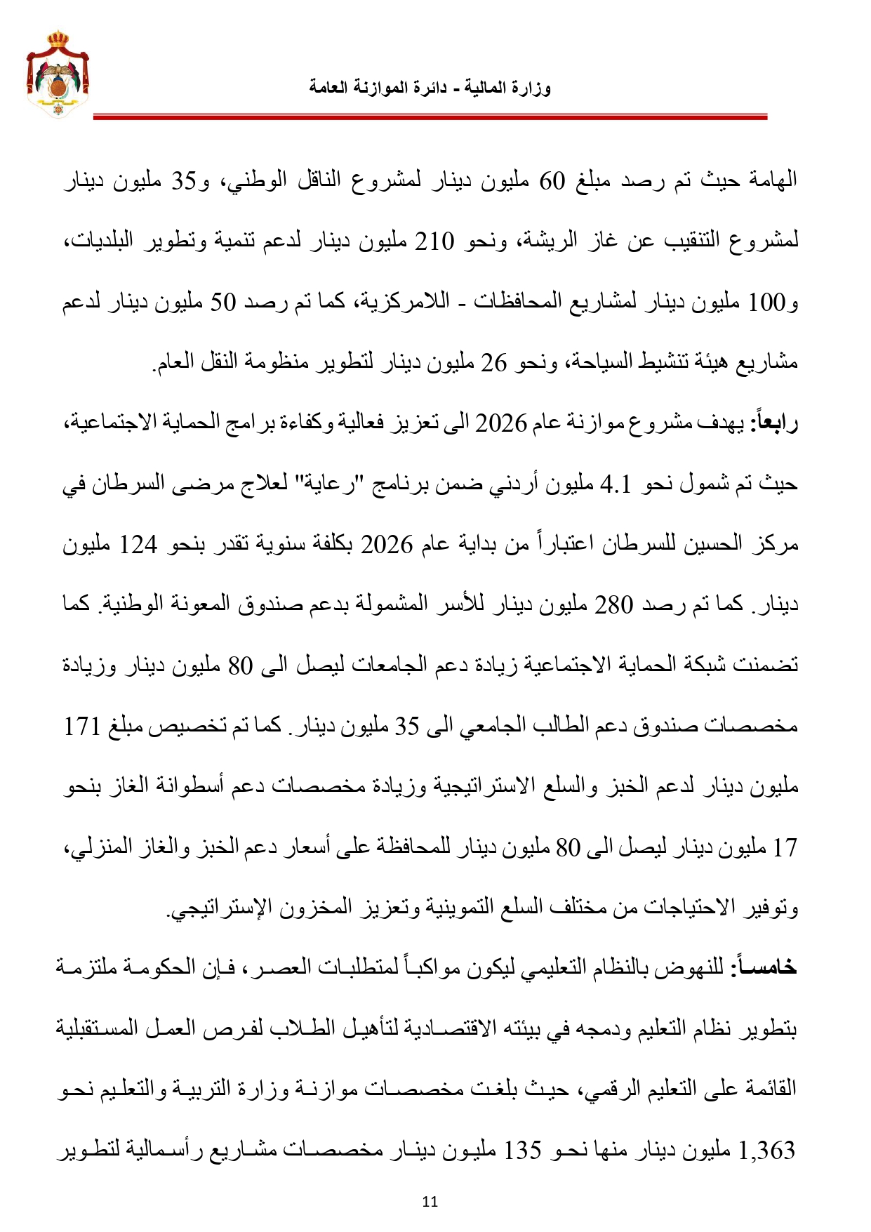 سرايا تنشر نص خطاب الموازنة: نمو بالأسعار الثابتة بما لا يقل عن 2.9 % لعام 2026