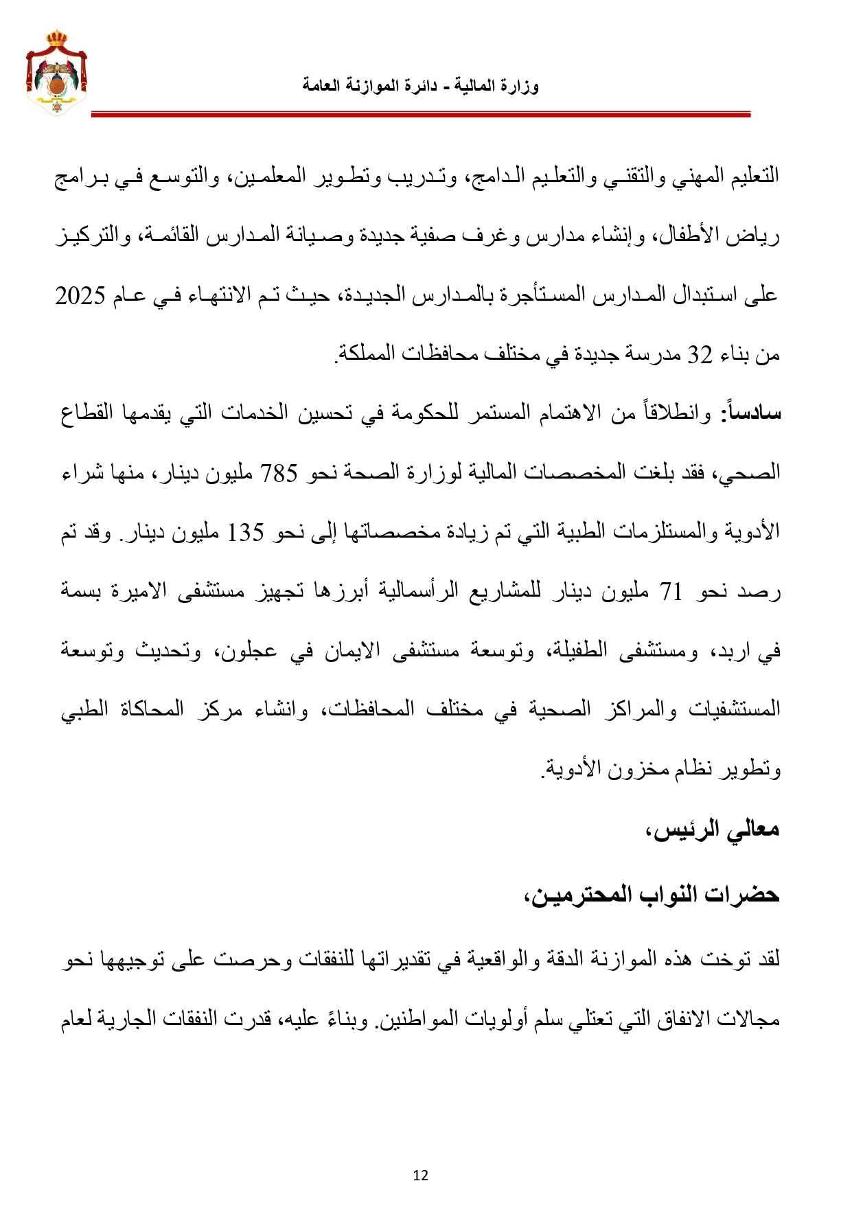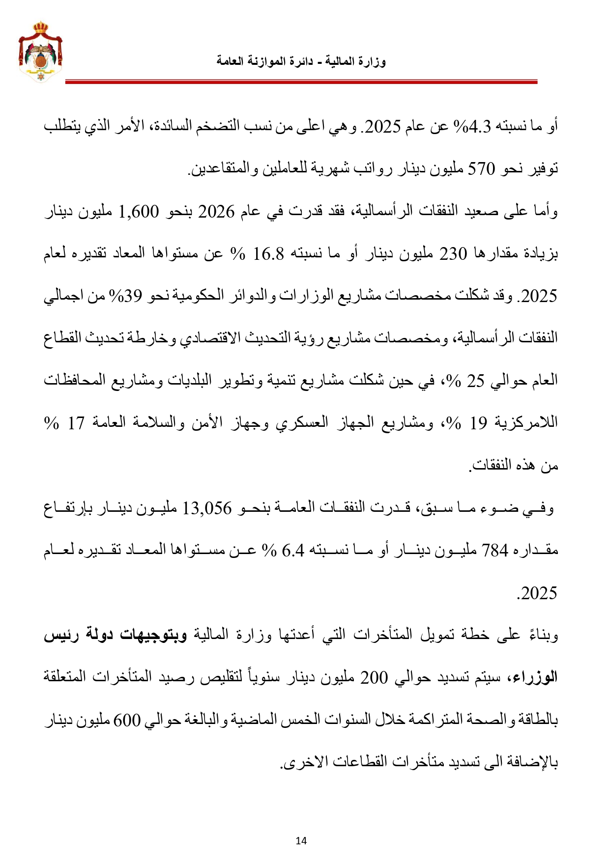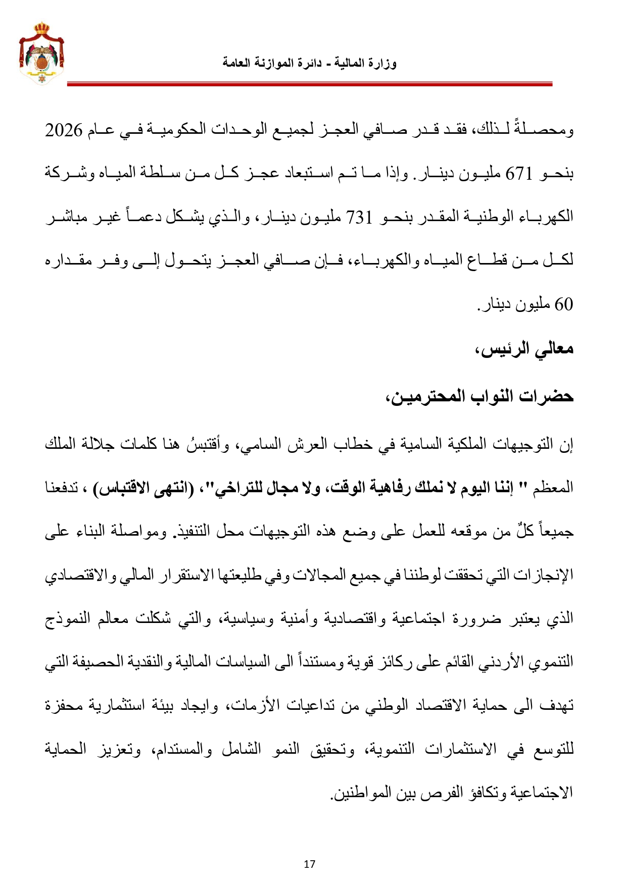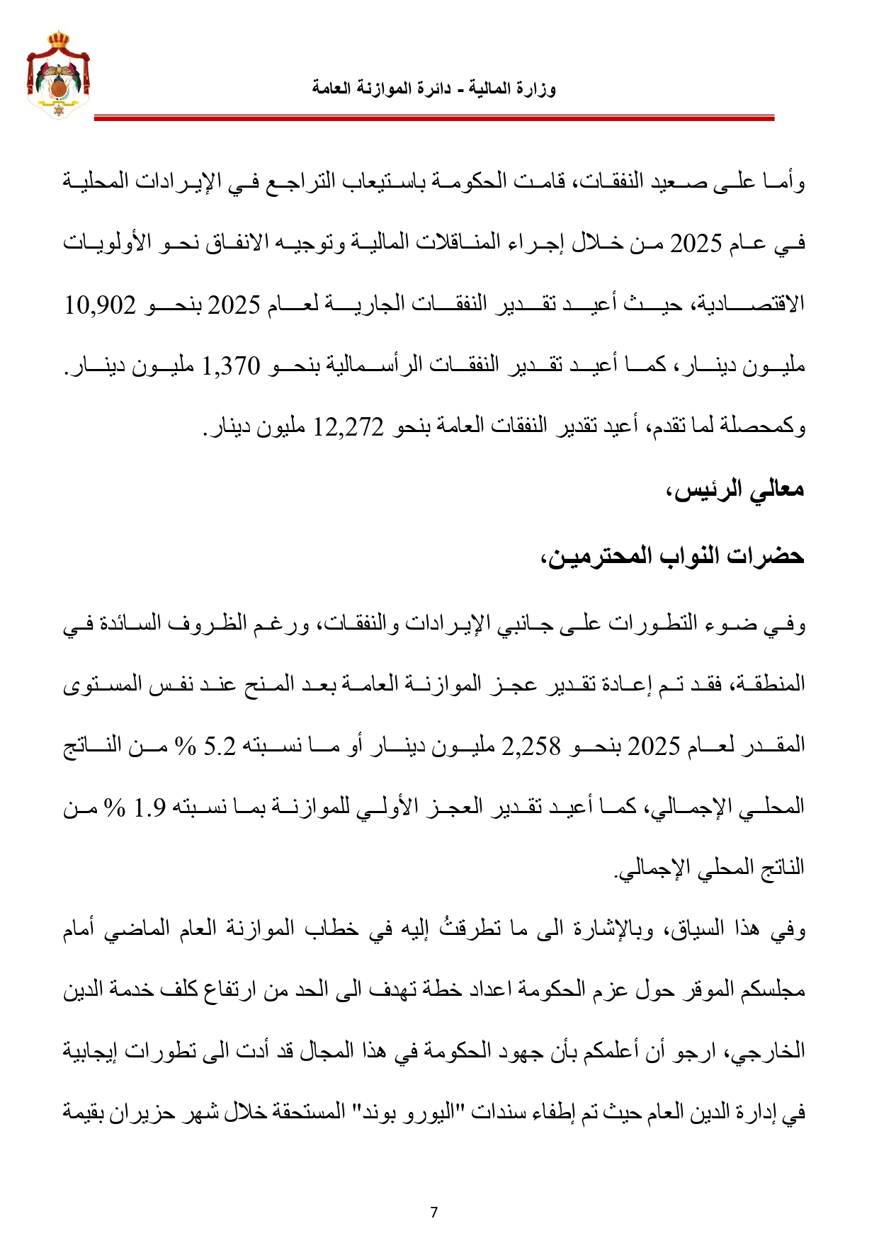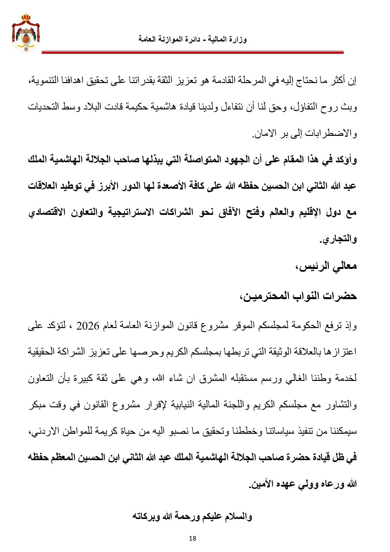 سرايا تنشر نص خطاب الموازنة: نمو بالأسعار الثابتة بما لا يقل عن 2.9 % لعام 2026