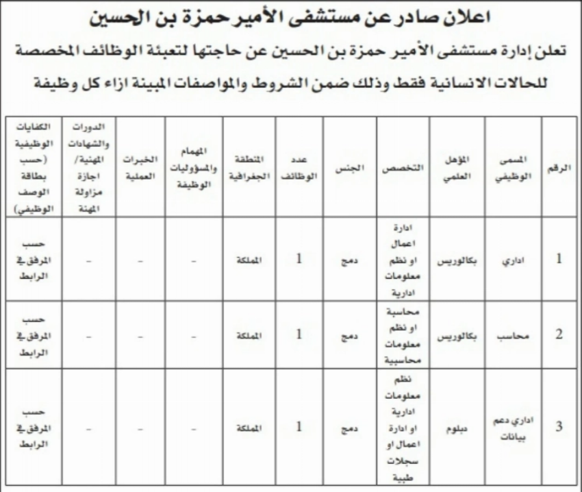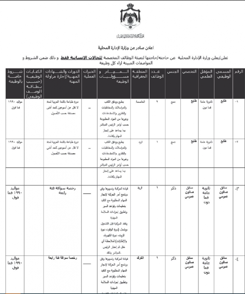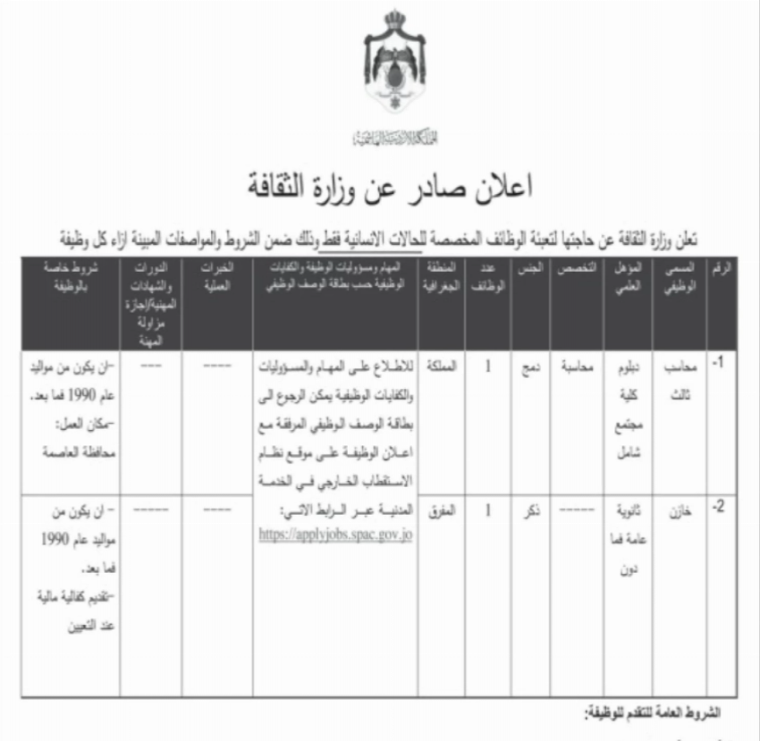 سرايا - أعلنت وزارات ومؤسسات حكومية، اليوم الأحد عن حاجتها لتعبئة وظائف شاغرة.