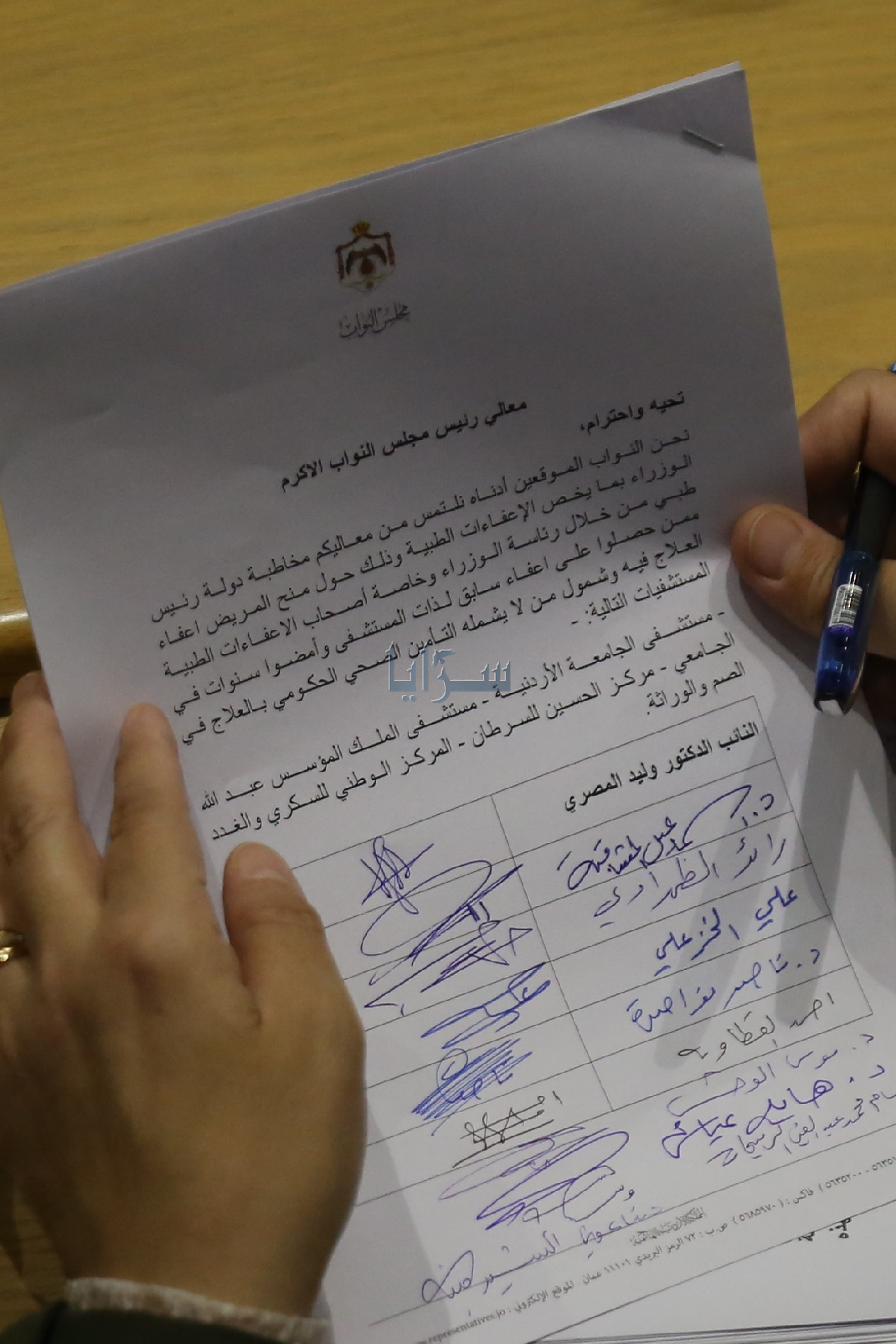سرايا - خاص - تبنى عدد من النواب مذكرة نيابية، موجهة إلى رئيس الوزارء الدكتور جعفر حسان، للمطالبة بتوسيع الإعفاءات الطبية.