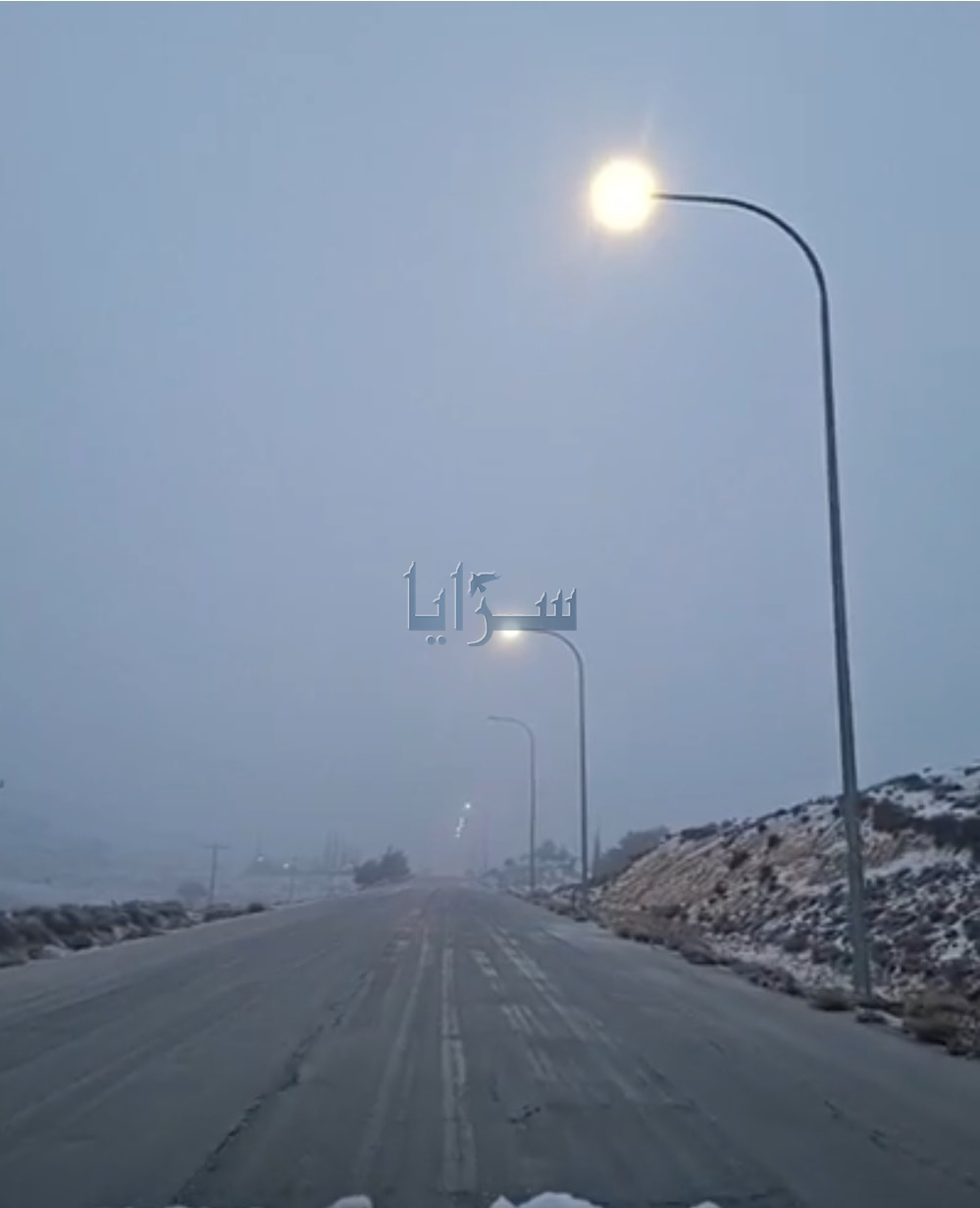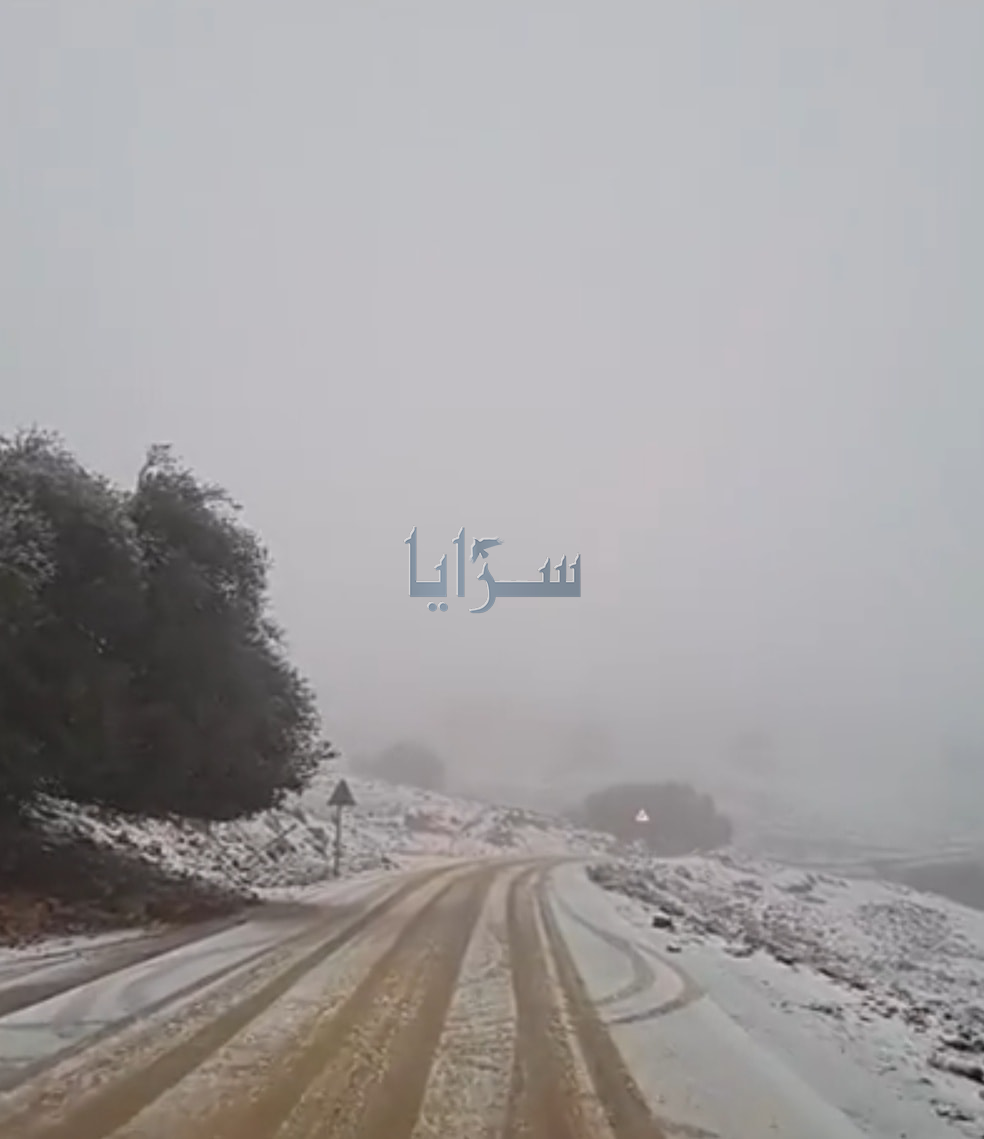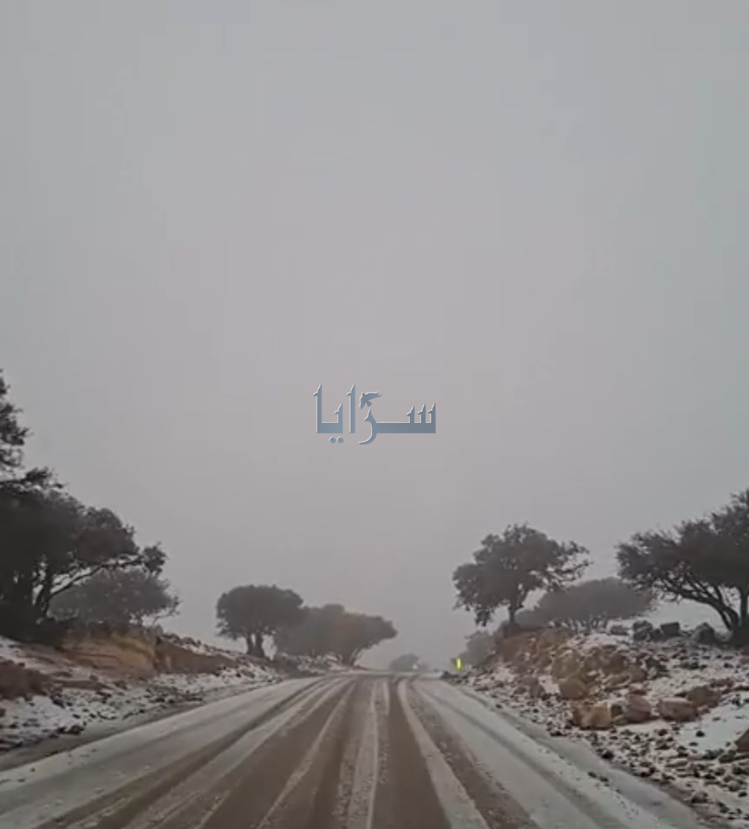 بالصور والفيديو  ..  تساقط الثلوج يكسو مرتفعات الشوبك والجنوب صباح اليوم