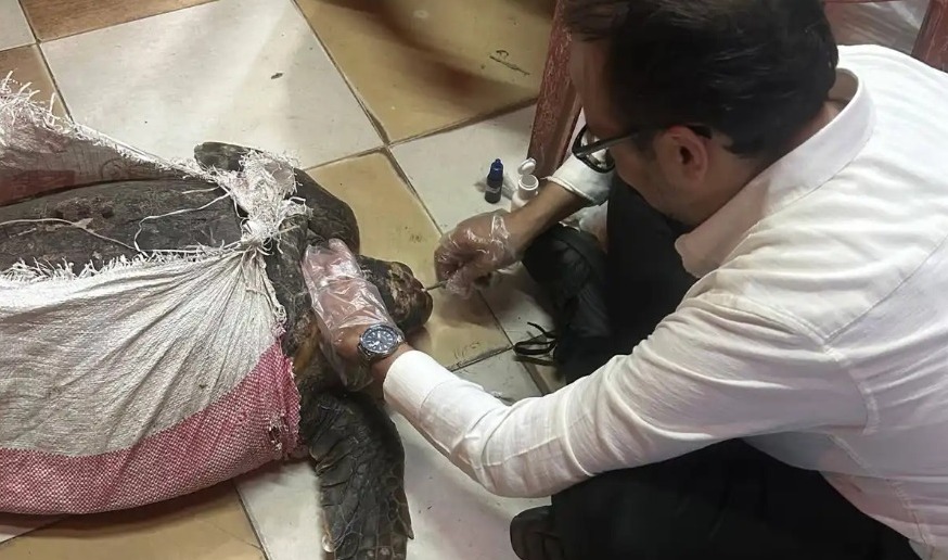 وبدأت تفاصيل الواقعة بتدخل عاجل من طبيب بيطري، تمكن من تقديم الرعاية اللازمة للسلحفاة وتأمين حالتها الصحية.