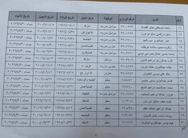 إنهاء خدمات 30 موظفاً في وزارة التربية