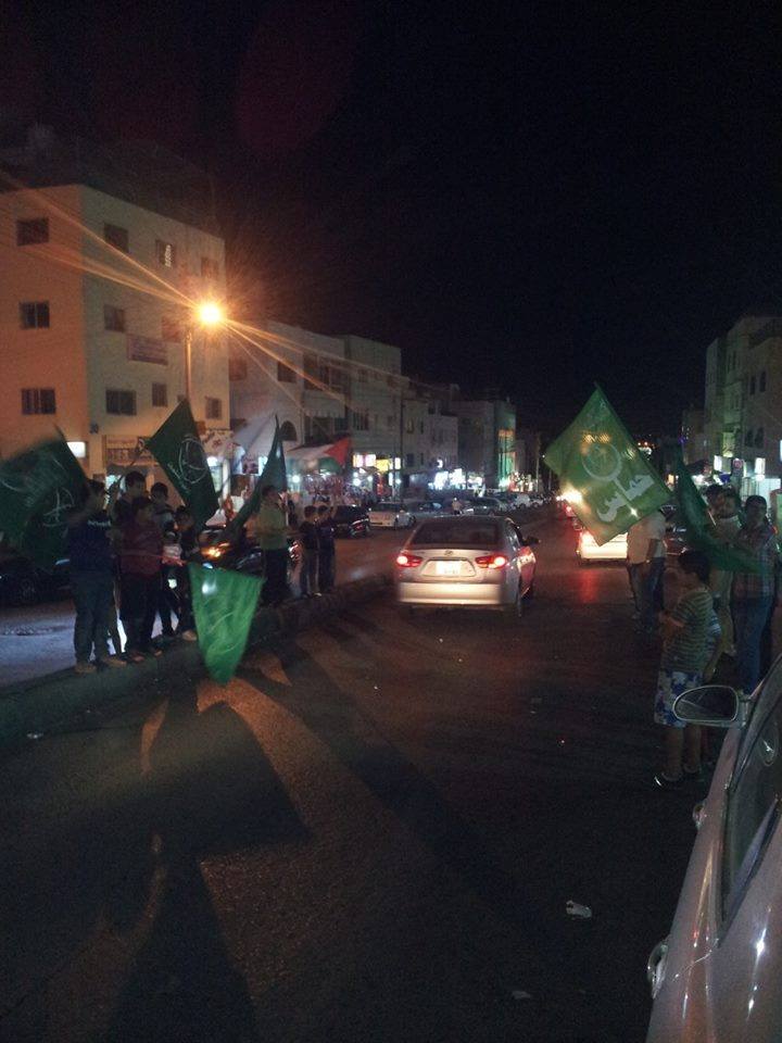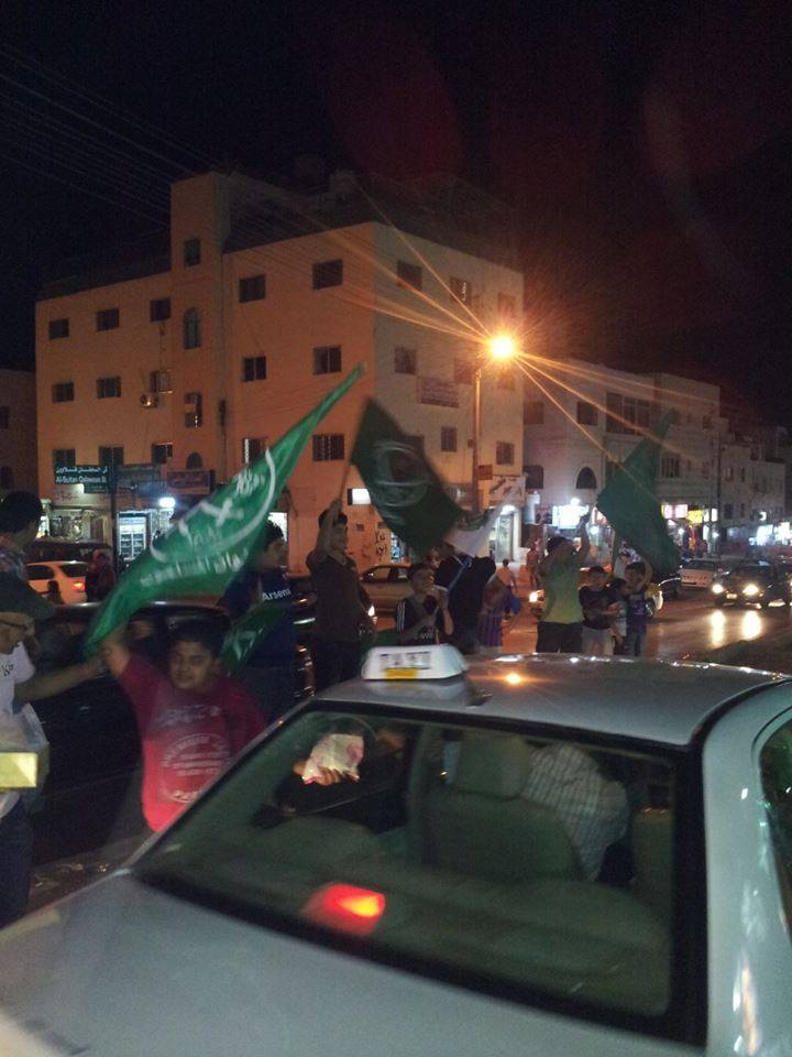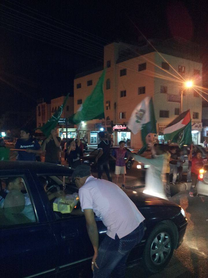 وشهدت أحياء متفرقة من ضواحي العاصمة عمان "طبربور، المنارة، النزهة" مسيرات حاشدة وأخرى للسيارات إحتفالاً بإنتصار غزة، فيما اطلق أخرون الألعاب النارية، إبتهاجاً بهذا النصر.