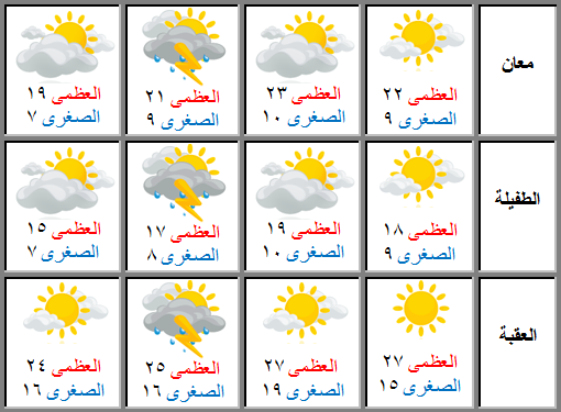 أما يومي الاربعاء والخميس فتعود الاجواء الى الاستقرار مجددا ويطرأ انخفاض طفيف على درجات الحرارة.