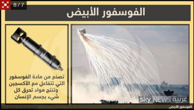كما يعد الفوسفور الأبيض من أسلحة الدمار الشامل، إذ يصنع من مادة الفوسفور التي تتفاعل مع الأكسجين منتجة مواد شديدة الاحتراق، وقد استخدم الفوسفور الأبيض من قبل الجيش الأميركي في العراق، وكذلك من قبل الجيش الإسرائيلي في حربه على غزة في 2007.
