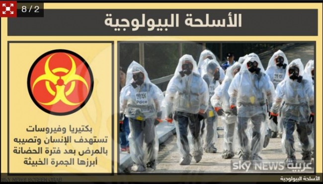من أشد الأسلحة خطورة، الأسلحة البيولوجية التي تعتمد على نشر فيروسات وبكتريا تسببت للإنسان أمراضا قاتلة بعد فترة الحضانة التي تمضيها في جسم الإنسان. ومن أشهر أنواع الأسلحة تلك الجمرة الخبيثة أو الإنتراكس.