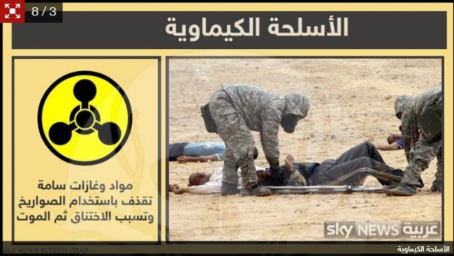كما تعد الأسلحة الكيماوية، أحد أنواع أسلحة الدمار الشامل، وتتكون من مواد وغازات سامة يتم القصف بها عبر القذائف أو الصواريخ، وتسبب هذه الأسلحة اختناقات شديدة تنتهي بالموت في كثير من الحالات. وحسب الأمم المتحدة فإن هذه الأسلحة استخدمت في الحرب السورية في أغسطس 2013 وتسببت بمقتل المئات.