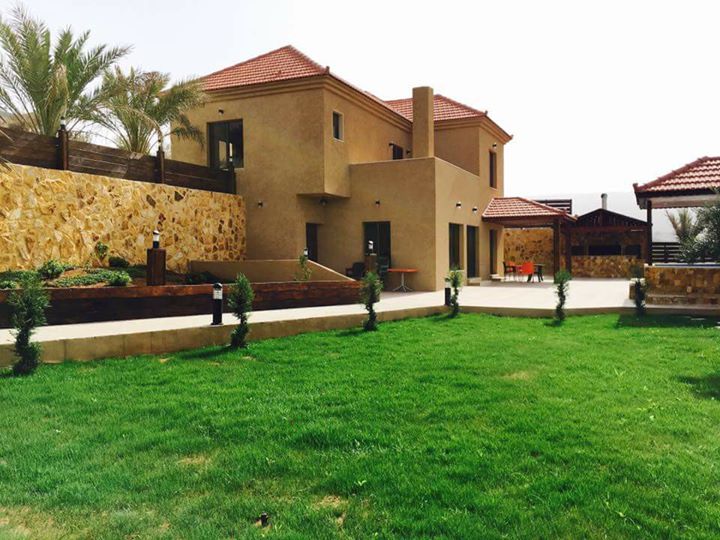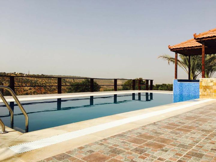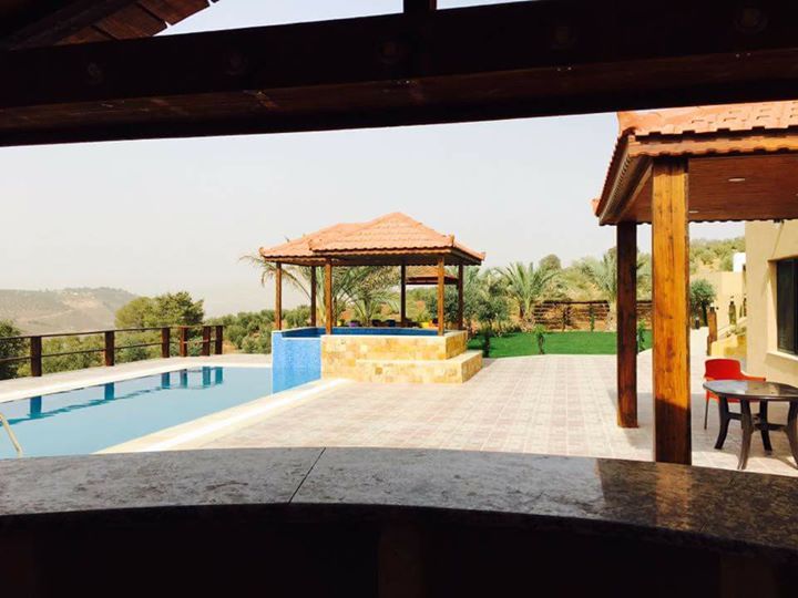 المساحة ٤ دونم مع مسطح فيلا ١٨٠ متر تشطيب سوبر ديلوكس طابقين ٣ غرف نوم واحده ماستر ٣ حمامات ، فيربليس مطبخ وغرفه جلوس ، ترس مفتوح مطل على المزرعه كامله ، قرميد على كامل الفيلا بالاضافه الى جلسات خارجيه مغطاه بالقرميد ،مسبح كبير ٤*١١ نظام اوفر فلو مع جاكوزي كبير يتسع ل١٢ شخص وباربيكيو كبير مع كاونتر خدمه ، شلال كبير ارتفاع ٣*١٠ متر ،المزرعة جديده و لم تسكن بعد،مساحات نجيل كبيرة بالأضافة ل شجر نخيل عدد ١١