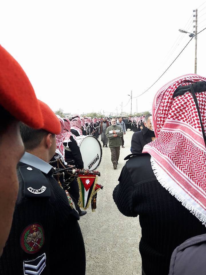 وقد خيمت حالة من الحزن ممتزجة بشعور الفخر لنيل الوكيل الجيزاوي شرف الشهادة في سبيل الدفاع عن ارض الوطن وحماية المواطنين من الارهاب والارهابيين الذين يحاولن تهديد امن المملكة ، وقد عبر المواطنون عن تكاتفهم وتلاحمهم يداً بيد مع الاجهزة الامنية للدفاع عن ثرى الاردن واجتثاث الارهاب واصحاب الفكر الظلامي.
