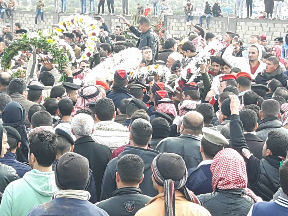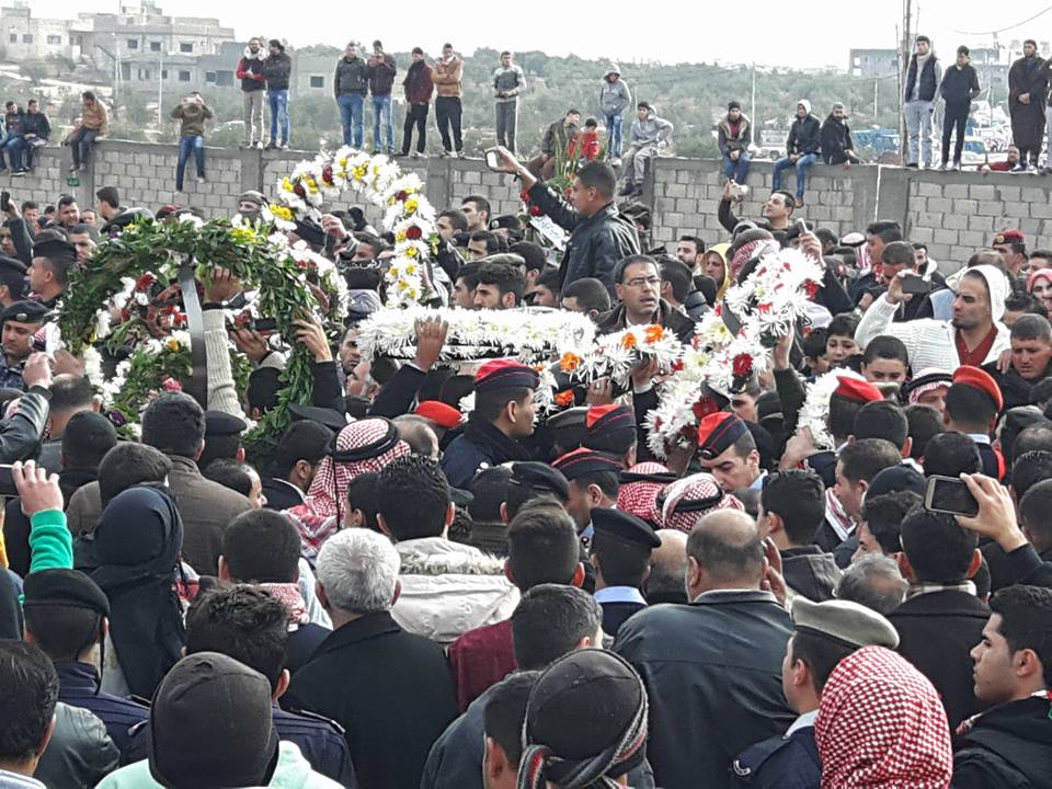 سرايا - ايمن العمري - شيع المئات من اهالي بلدة الشجرة ومدينة الرمثا الشهيد الوكيل محمد الجيزاوي الذي استشهد امس الثلاثاء في الاشتباكات المسلحة التي وقعت بين قوات الدرك ومجموعة ارهابية تحصنت في احد المنازل بقرية قريفلا في محافظة الكرك.