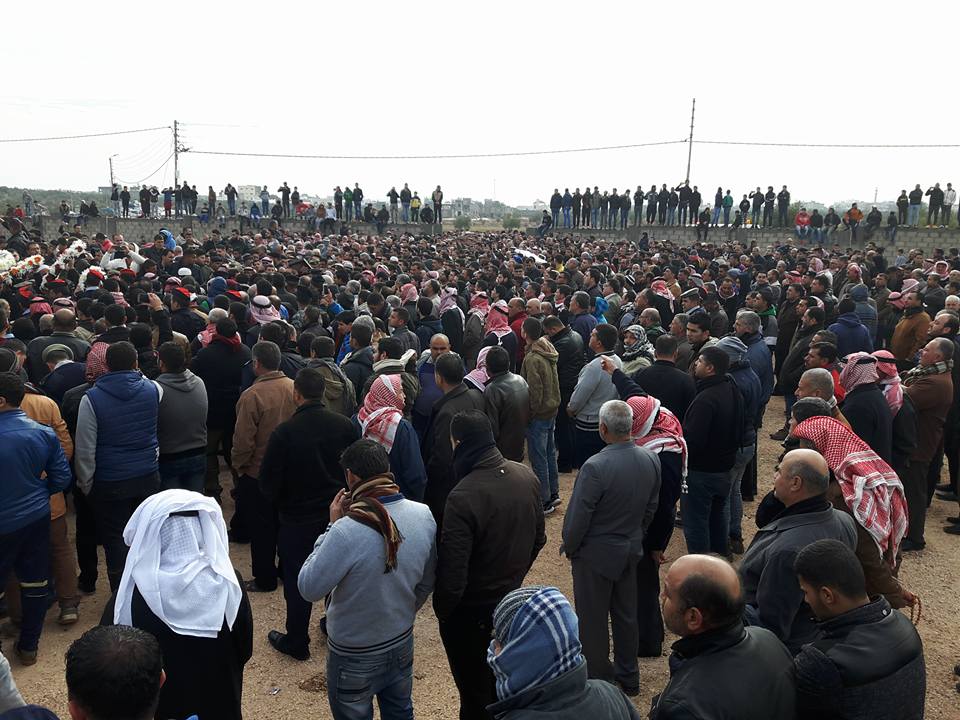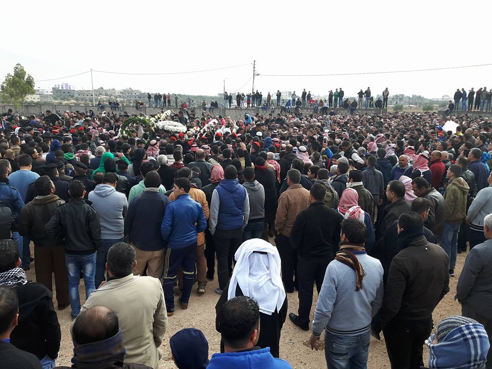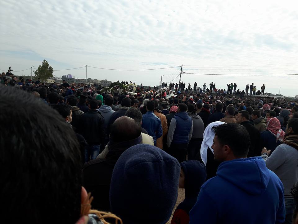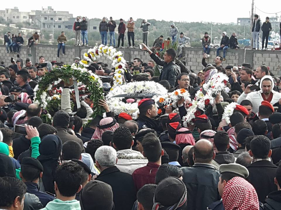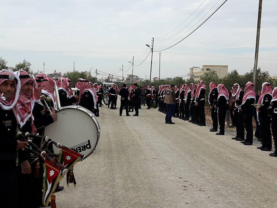 واقيمت للشهيد جنازة عسكرية مهيبة في الجرة بدأت بقدوم جثمانه الى مسجد البلدة والصلاة عليه ثم نقل جثمانه الطاهر الى المقبرة ، حيث اصطف المئات من المشيعين بالاضافة الى رفاق الشهيد من قوات الدرك والامن العام الذين اقاموا له جنازة عسكرية وقاموا بتحية الشهيد واطلاق رصاصات الوداع الاخير .