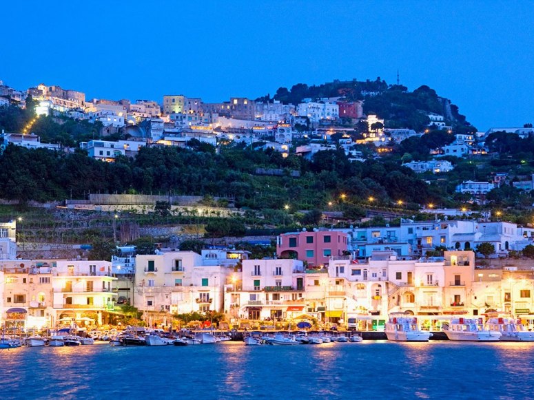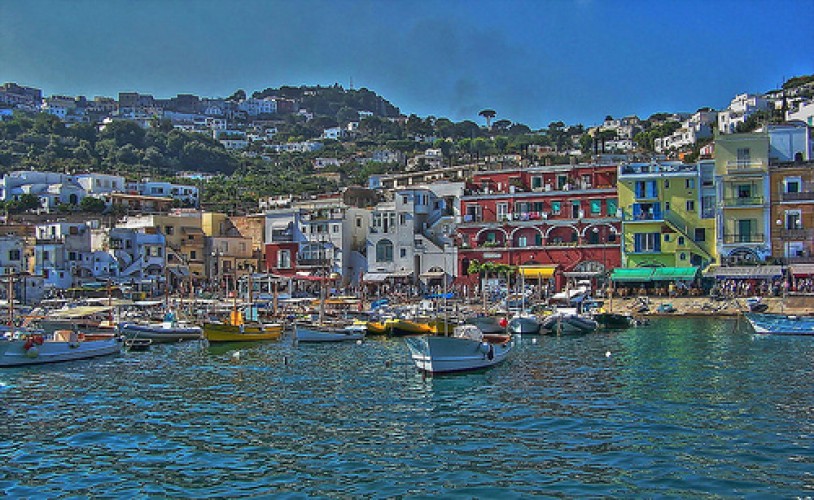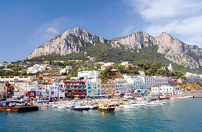 يوجد ميناءين لهذه الجزيرة مارينا غراندي (وهو الميناء الرئيسي لهذه الجزيرة) ومارينا بيكولا وجزيرة كابري وعلى أطرافها الكثير من المنحدرات العمودية الشكل الرائعة الجمال