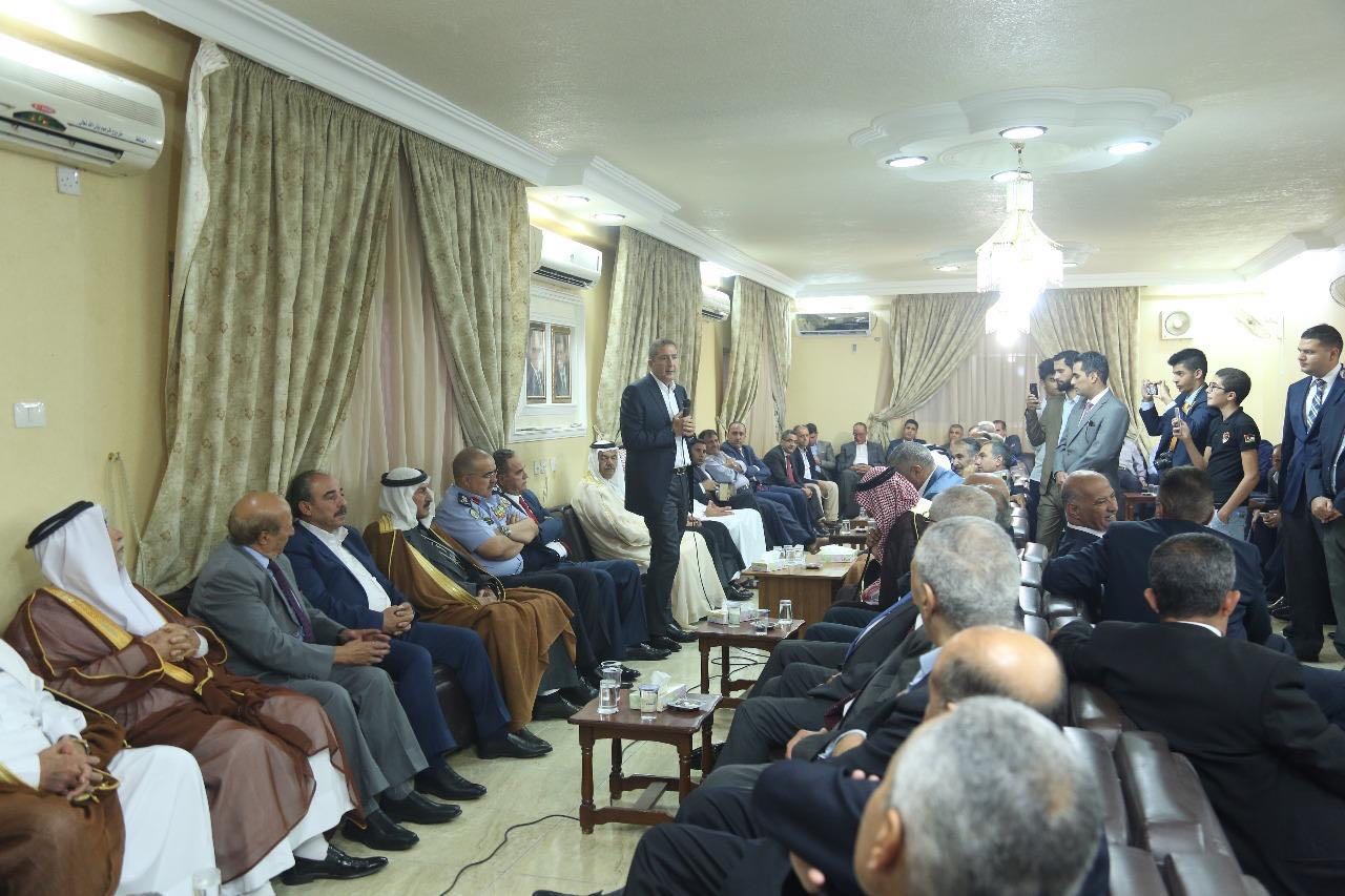 الأخوة الكرام، أكرر الشكر للأخ أبو عمار والأخ أبو أحمد، ولآل المبيضين الكرام، ولكل من حضر اليوم. وأرغب أن أستمع منكم أكثر، وأنا صادق عندما أقول إن النخب الحقيقية هي في المحافظات ومن شبابها المثقف والواعد. وإذا كان لي الشرف دائماً، وبشكل مكثف خلال السنوات الست الأخيرة، بأن أزور جميع المحافظات في المملكة عدة مرات وكثيراً من قراها، وأتاحت لي المزيد من المعرفة والحوار وطرح أفكاري لما أرى أنه قد يثري نقاشنا العام ويكون عوناً للحكومات؛ فالمسؤولية ليست بالقطعة أو بالمياومة، وبصراحة أقولها بصوت عالي أنا الذي تعلمت من هذه الزيارات وليس العكس... تعلمت من شباب وشابات الوطن الأمل والتغلب على التحديات، ومن كبارنا التضحية والحكمة، ومن الأمهات والحاجات على امتداد هذا الوطن الصبر والإيمان والعطاء غير المشروط.