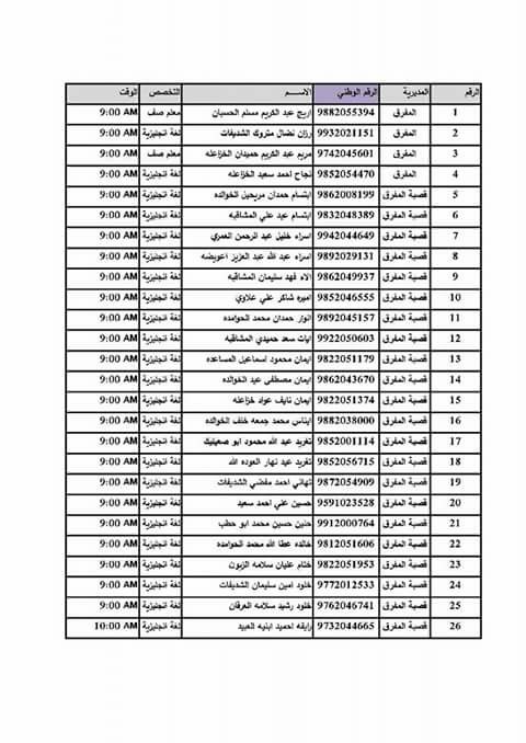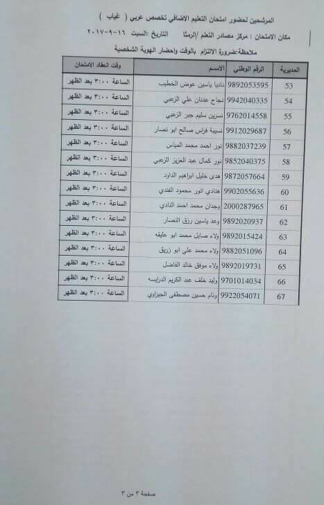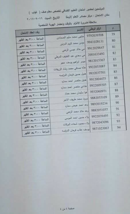وطلبت الوزارة من المعلمين المدعوين التواجد في تلك المراكز في تمام التاسعة صباحا من صباح يوم السبت 16/9/2017 .
