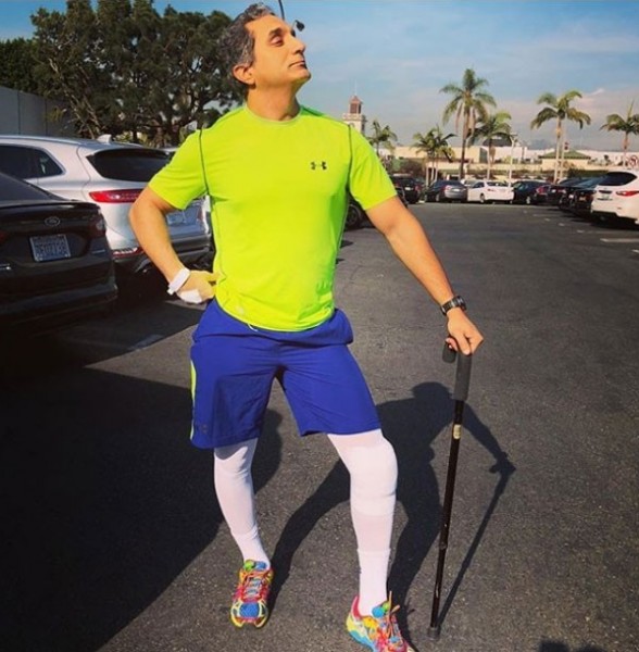 باسم يوسف خضع لجراحة في قدمه اليسرى، وعلق قائلا: "ده أنا النهاردة ساعة بعد العملية على ركبتي الشمال، من تلات سنين تقريبا نفس عملية الغضروف على ركبتي اليمين، واحدة عشان كورة والتانية عشان باسكت".