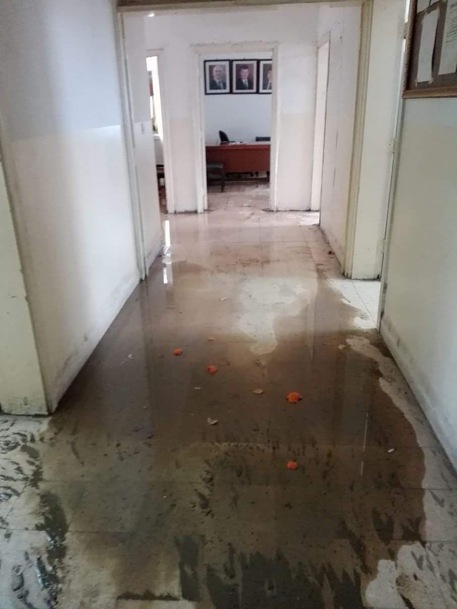 وبينوا ان الهطول الغزير للامطار أدى الى فيضان مناهل الصرف وتدفق المياه العادمة الى داخل مبنى المكتب وهو ما دفعهم الى المغادرة خارج المبنى.