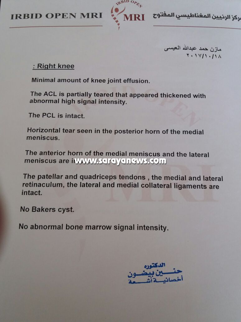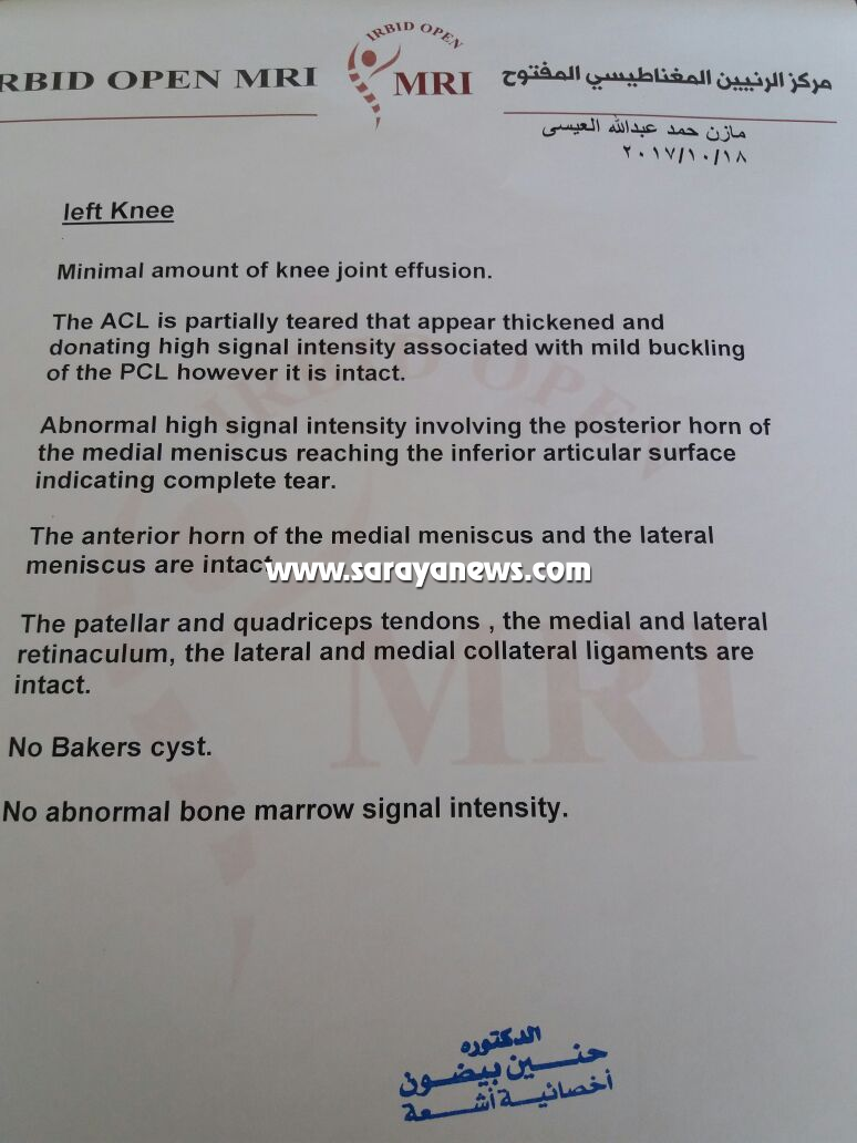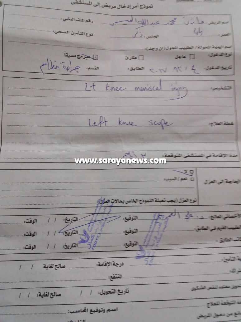 وقال ابو جني لسرايا انه مريض ويحتاج إلى تدخل جراحي للركبه وعنده قطع في الرباط الصليبي ويحتاج إلى زراعة رباط صليبي م، مشيرا الى انه يعيل عائلة من خمس بنات له فقط لا يوجد لديه اولاد يعنونه على الحياة ، مضيفا انه أجريت له سبعة عمليات كلى ومصاب بحادث سير .