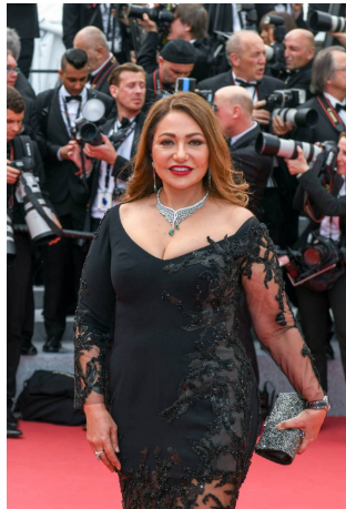 واختارت الفنّانة المصرية القديرة في النسخة 71 من المهرجان العالمي، فستاناً أسود، متناسقاً بين القماش والدنتيل، ليبدأ بصدر مكشوف، وينتهي شفافاً.