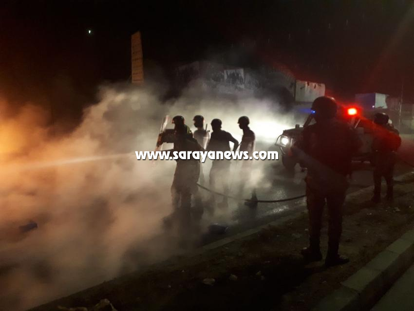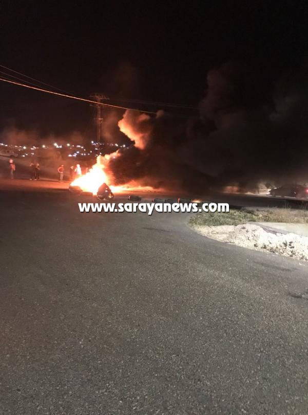 سرايا - اغلق محتجون لليوم الثاني على التوالي ليل اليوم السبت، اشارة طريق الهاشمية مع المصفاة في الزرقاء بالاطارات المشتعلة.