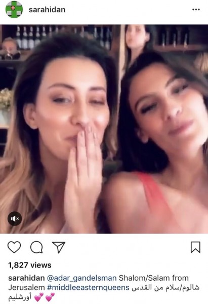 كما ارفقت بموقعها على انستغرام فيديو قصير جدا يجمعها مع ملكة جمال إسرائيلية سابقة هدار جانديلسمان توجهان خلاله التحية باللغة العبرية "شالوم"، وكتبت عيدان الى جانب الفيديو " شالوم/سلام من القدس أورشليم".