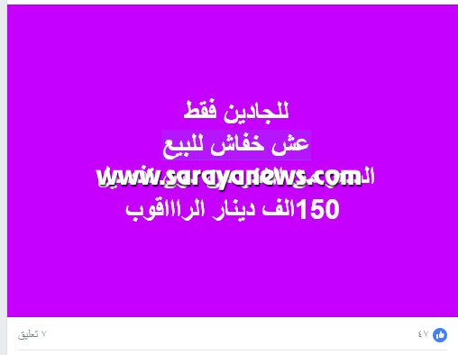 سرايا - محمد النواطير - تداول نشطاء موقع التواصل الاجتماعي بشكل لافت عروض لبيع وشراء 'عش الخفاش' باسعار خيالية ، مما اثار الامر حفيظة العديد من المواطنين حول ذلك .