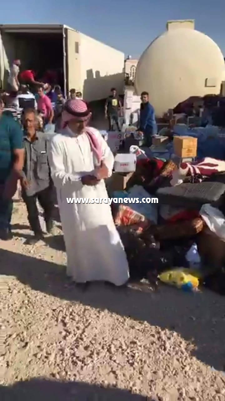 سرايا - اربد_ يوسف قطيش_ توافد المئات من المواطنين والتجار من مختلف محافظات الشمال إلى مدينة الحجاج في لواء الرمثا شرق مدينة اربد عصر اليوم السبت للتبرع بالمساعدات العينية العاجلة للنازحين السوريين في الجنوب السوري المحاذي للحدود الأردنية.
