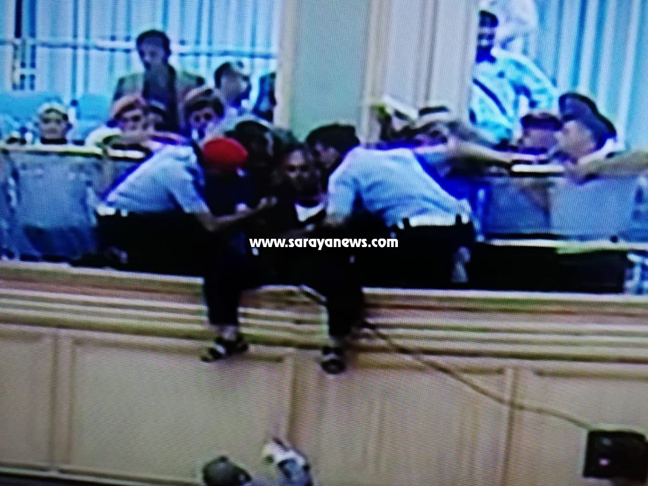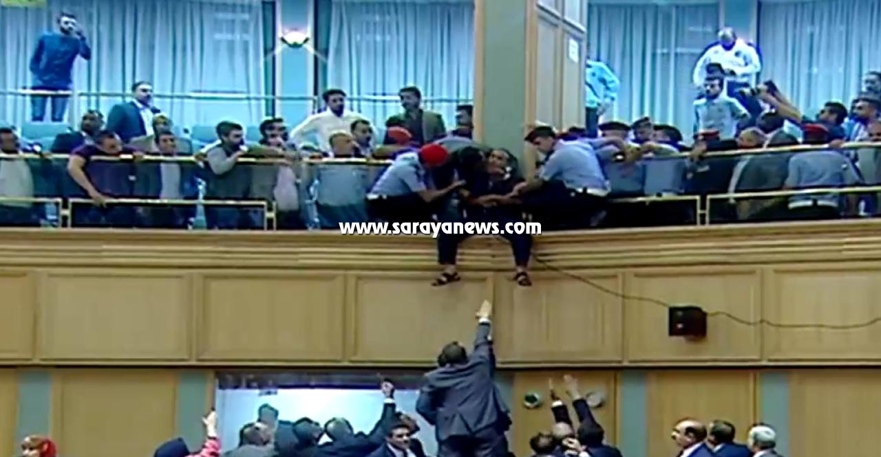سرايا - حاول أحد المواطنين من على شرفة مجلس النواب القفز لغايات الانتحار ، ما دعى الرئيس عاطف الطراونة الطلب من الأمن التدخل لمنعه .