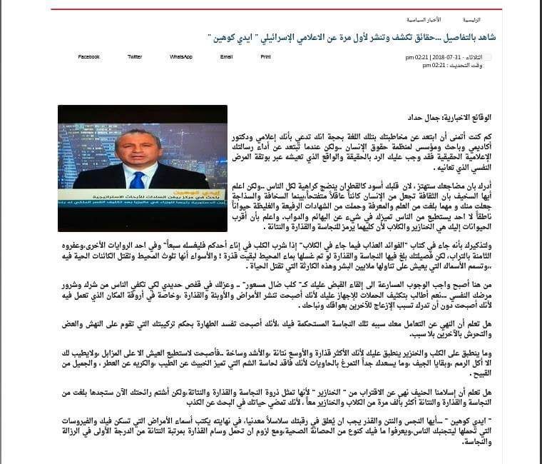 تعرض الزميل الصحفي جمال حداد للتهديد من قبل جهات صهيونية ، و ذلك بعد ان قام بنشر مقال هاجم فيه تدخلات الصحفي الصهيوني ايدي كوهين ، بالشأن الداخلي الاردني .