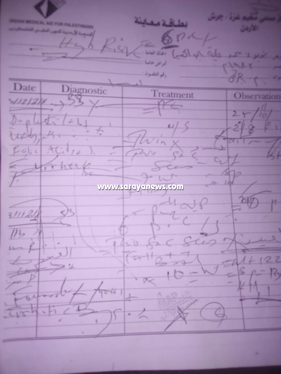 تابعت نجلاء.. "حينها ذهب الطبيب المقيم واحضر لي دكتورة أجنبية اسمها   وفحصتني مرة أخرى، وسألتني: بتراجعي في أي مكان.. أجبتها لا ارجع، فقالت: ما معك أي ورقه من أي مركز صحي، فقلت لها: لا.. ما معي– حيث كنت خائفة ما يقبلوا يعملوا لي عملية لأني من جرش فأخفيت موضوع التحويلة وأوراق المراجعة لأنهم في المستشفى لا يستقبلون من خارج محافظة اربد- وتم عمل فحص لدقات القلب وتأكدوا أن التوأم بصحة جيدة".
