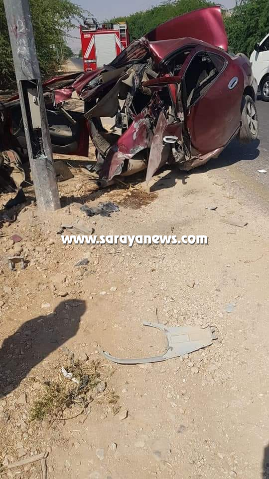 مصدر مطلع قال لسرايا أن سائق المركبة كان يقود المركبة بسرعة عالية قبل أن تنحرف وتواجه أمامها عامود الكهرباء الذي ادى لفصلها جزئين .