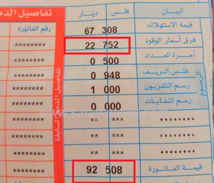 وكان عدد من المواطنين اشتكى من ارتفاع فاتورة الكهرباء بصورة مفاجئة وغير معتادة حيث اصبح يدفع اضعاف الفاتورة القديمة قبل اضافة بند فرق المحروقات .